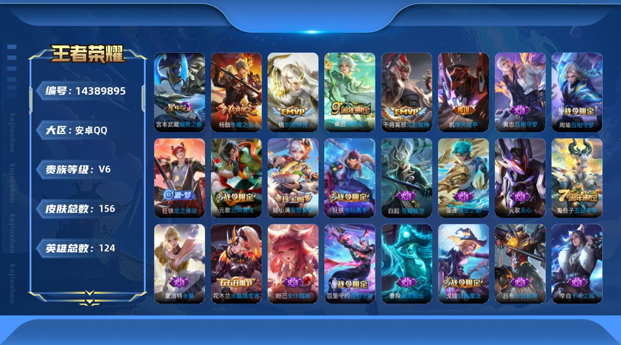 [14389895]【店主推荐捡漏号!可直接换绑】:安卓Q-V6-至尊星耀III段位-124英雄-156皮肤-5传说-1星元-34史诗
