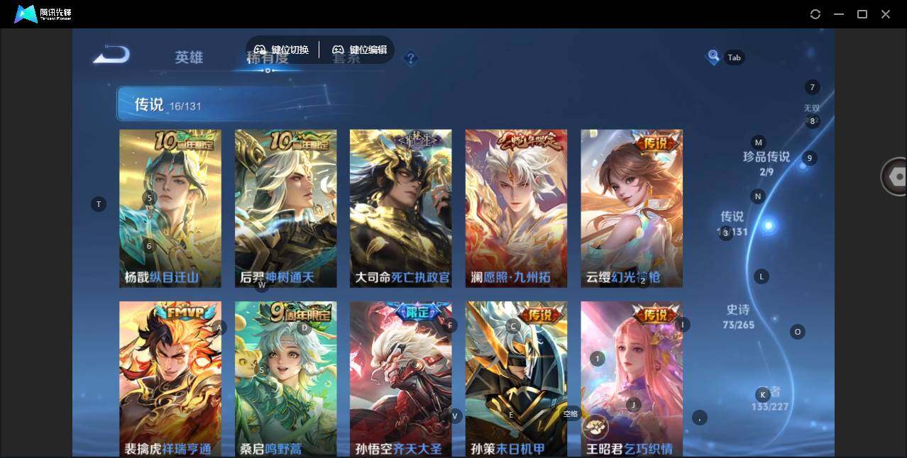 【传说皮肤】:杨戬纵目迁山,后羿神树通天,大司命死亡执政官,澜愿照九州拓,云缨幻光神枪,裴擒虎祥瑞亨通,桑启鸣野蒿,孙悟空齐天大圣,孙策末日机甲,王昭君乞巧织情,周瑜音你心动,镜炽阳神光,曜云鹰飞将,干将莫邪久胜战神,梦奇胖达荣荣,武则天海洋之心