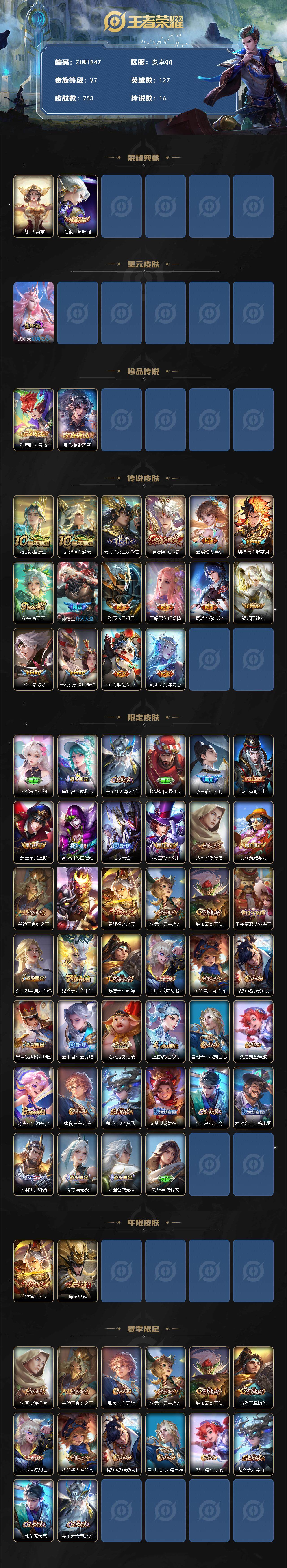 [14390135]【店主推荐捡漏号!可直接换绑】安卓Q-V7-最强王者段位-127英雄-253皮肤-1典藏皮肤-1典藏英雄-2珍品传说-16传说-73史诗