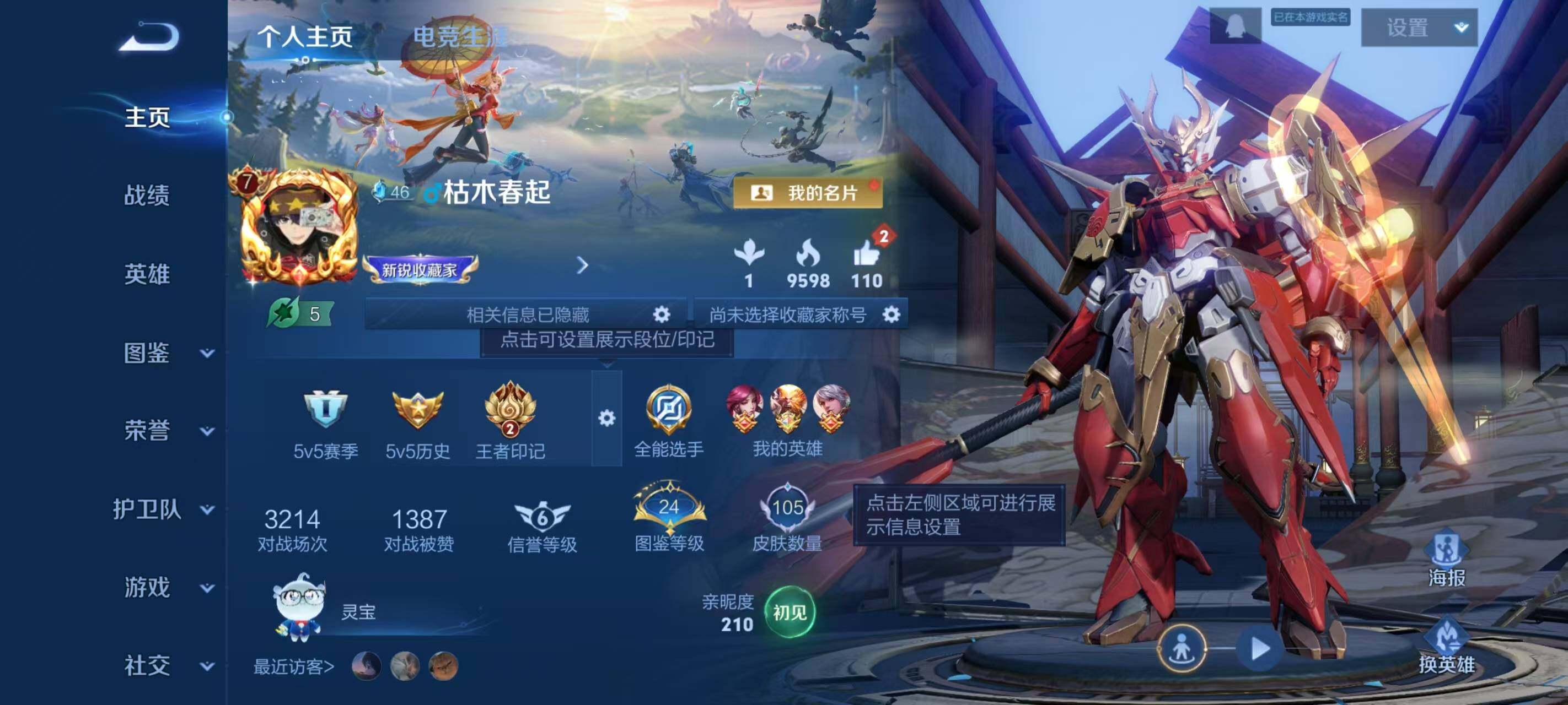- PX_2103123-实名: 可修改 贵族等级: V5 英雄数: 109 皮肤数: 87 限定皮: 李小龙,至尊宝,鸣野蒿