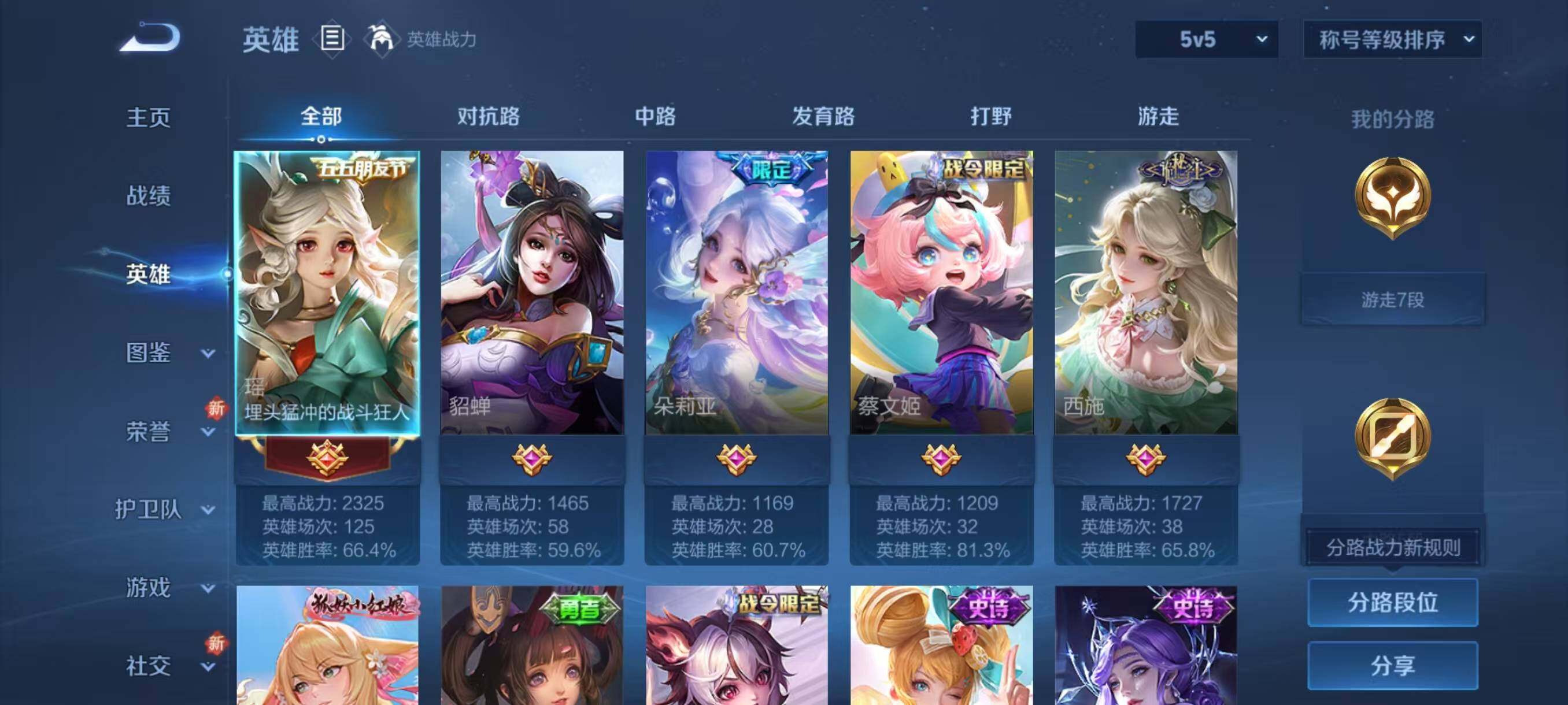 【史诗皮肤】:露娜紫霞仙子,赵云皇家上将,甄姬冰雪圆舞曲,王昭君偶像歌手,狄仁杰魔术师,宫本武藏鬼剑武藏,孙尚香水果甜心,嬴政摇滚巨星,妲己魅力维加斯,李白千年之狐,安琪拉魔法小厨娘,张飞乱世虎臣,雅典娜冰冠公主,安琪拉心灵骇客,百里守约特工魅影,狄仁杰鹰眼统帅,瑶遇见神鹿,西施诗语江南,上官婉儿神器万象笔,妲己灵卜魔法,高渐离燃音魔法,芈月浮光幕影,蔡文姬夏日便利店,蒙犽顽岩魄,暃埋骨钱,少司缘涂山红红,大司命东方月初,姬小满战舞者,李白谪仙醉月,赵怀真器灵浮梦炉,阿轲化蝶舞,狂铁龙之律动,周瑜百相守梦,黄忠百相守梦,朵莉亚幻珠鲛人,西施织梦人,公孙离涂山容容