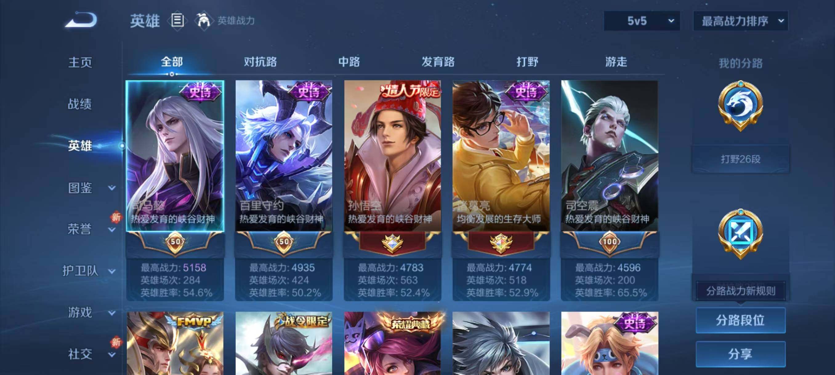 【赛季限定】:庄周蜃楼王,孙膑妖精王,扁鹊炼金王,白起狰,芈月重明,夏侯惇朔风刀,曹操烛龙,典韦穷奇,狄仁杰万华元夜,达摩沙漠行僧,老夫子醍醐杖,程咬金演武夺筹,兰陵王金庭之子,张良古海寻踪,亚瑟狮心王,牛魔御旌,李元芳云中旅人,虞姬凯尔特女王,钟馗驱傩正仪,雅典娜黎明之约,太乙真人饕餮,鬼谷子原初探秘者,苏烈千军破阵,百里玄策原初追逐者,弈星混沌棋,梦奇顽趣,沈