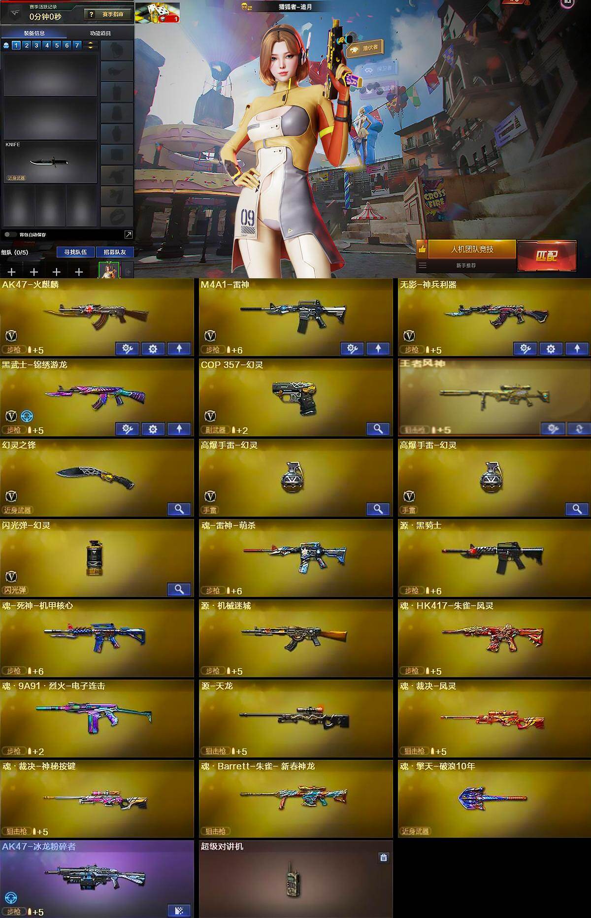【英雄级武器】:AK47-火麒麟,M4A1-雷神,无影-神兵利器,黑武士-锦绣游龙,COP 357-幻灵,幻灵之锋,高爆手雷-幻灵*2,闪光弹-幻灵
