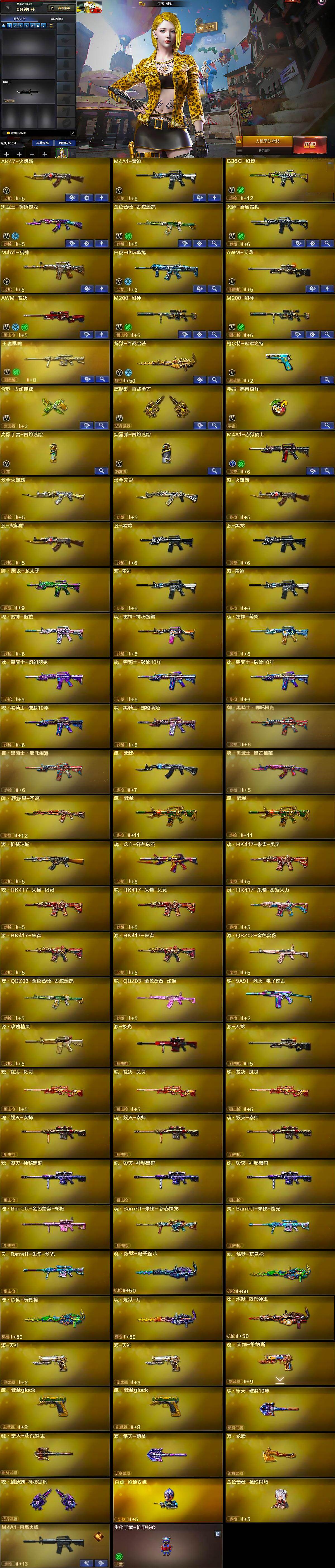 【热门武器】:G36C-幻影,M200-幻神*2,金色蔷薇-古蛇迷踪,修罗-古蛇迷踪,白虎-电玩蓝兔,柯尔特-冠军之特,白虎-枪娘安妮