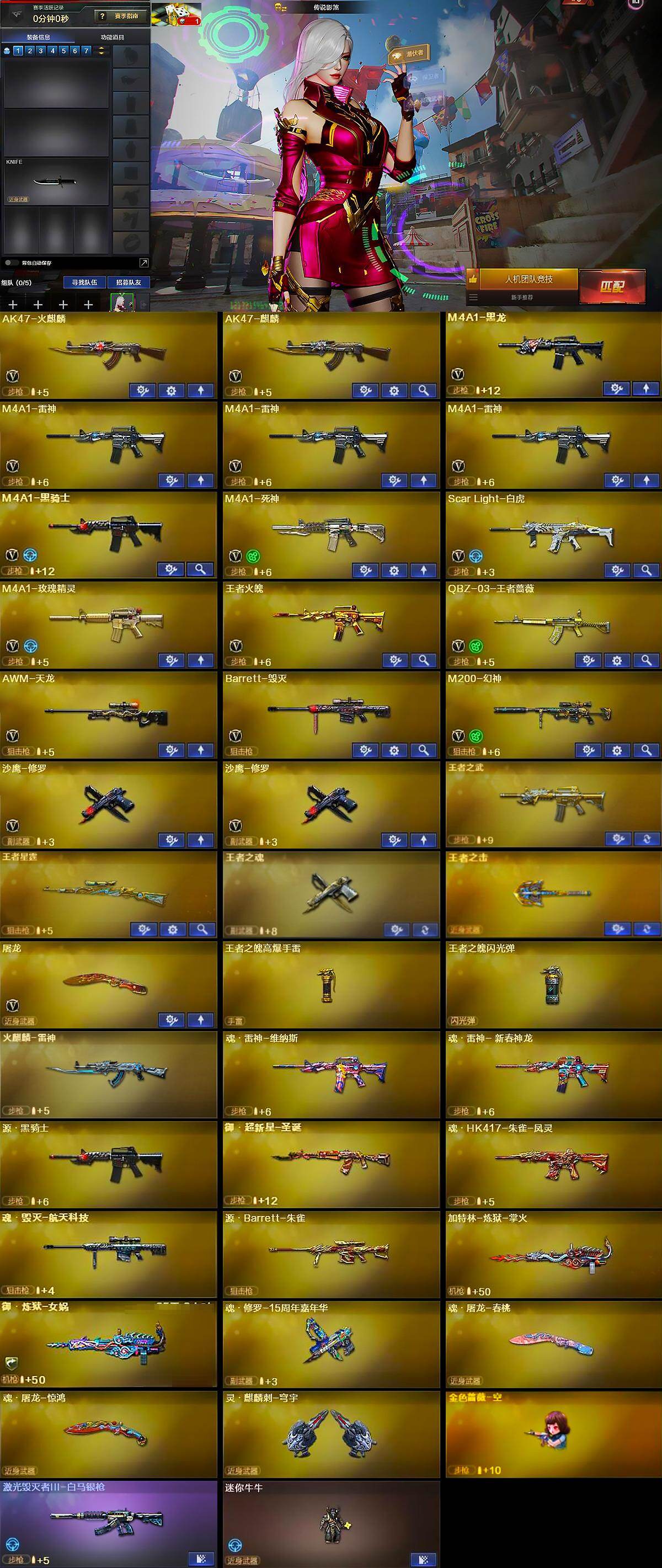 【热门武器】:Scar Light-白虎,M200-幻神,M4A1-黑骑士,金色蔷薇-空,沙鹰-修罗*2,金刚伞