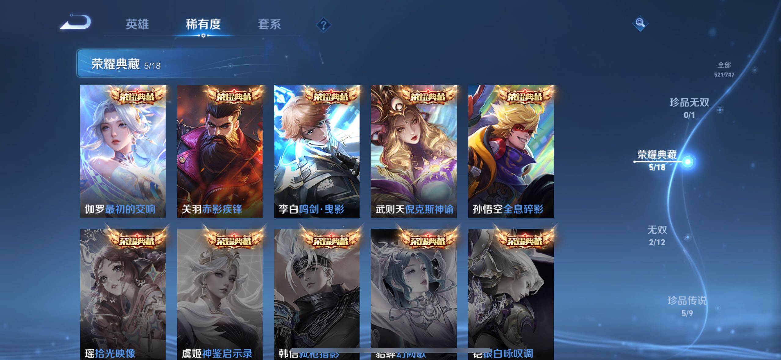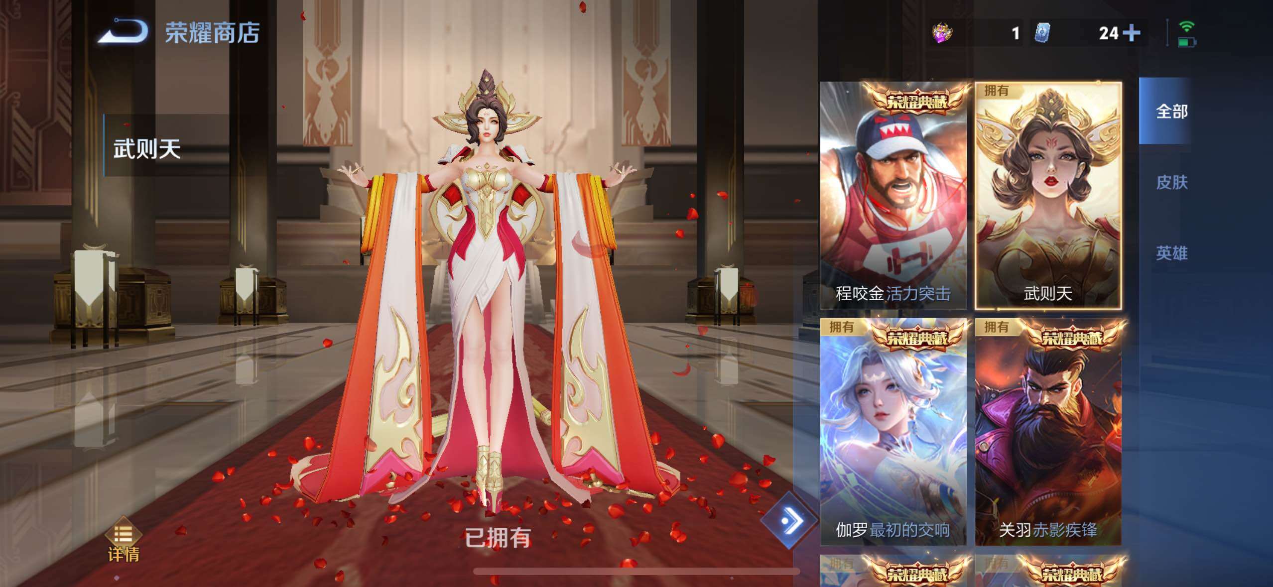【荣耀典藏】:武则天英雄,孙悟空全息碎影,武则天倪克斯神谕,李白鸣剑曳影,关羽赤影疾锋,伽罗最初的交响