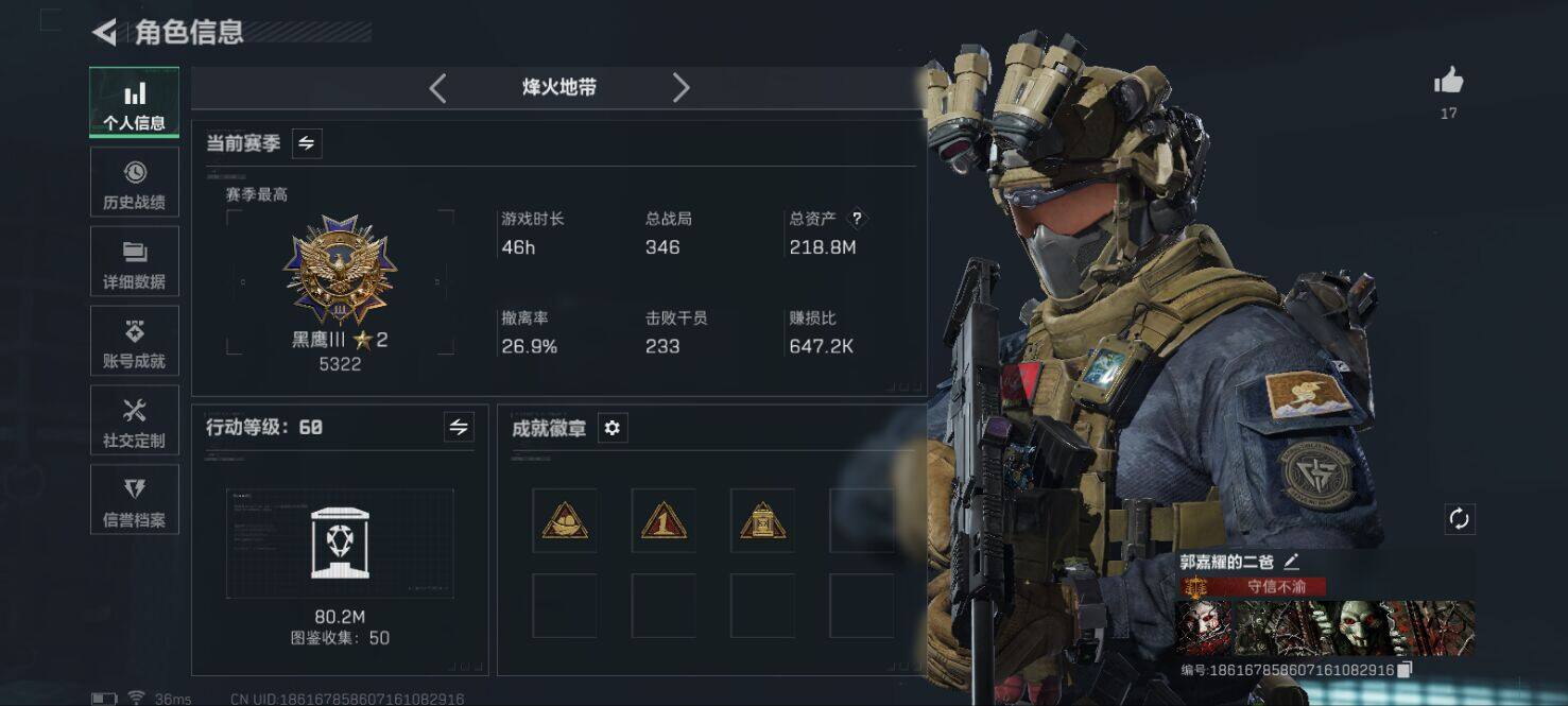[14429264]可二次 【店主推荐捡漏号!可直接换绑】26331k哈伏币-196m流动资产-60烽火等级-黑鹰-15战场等级-列兵
