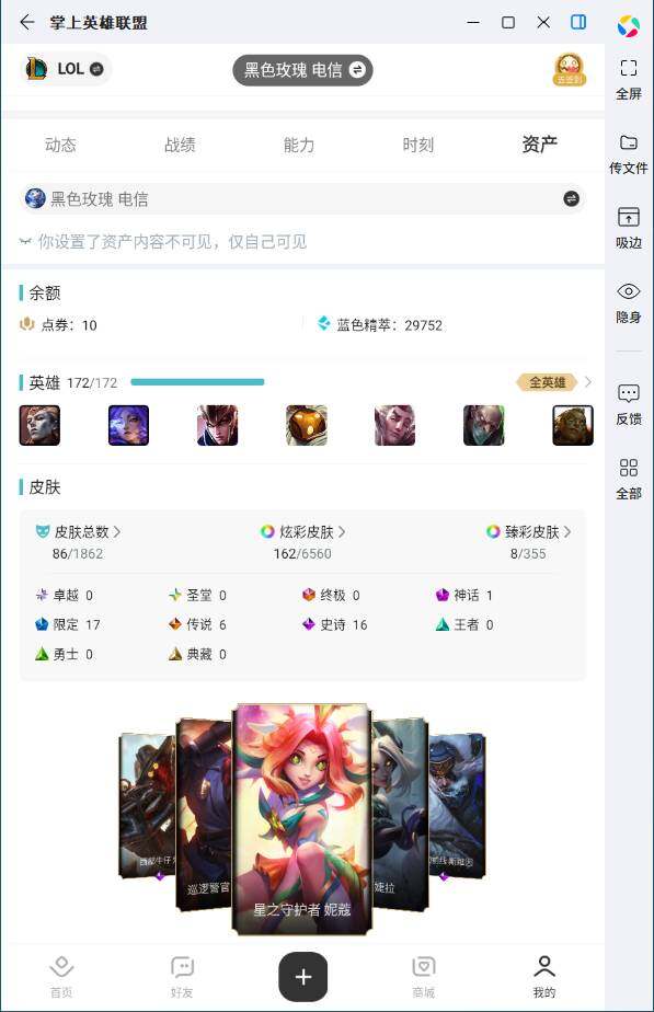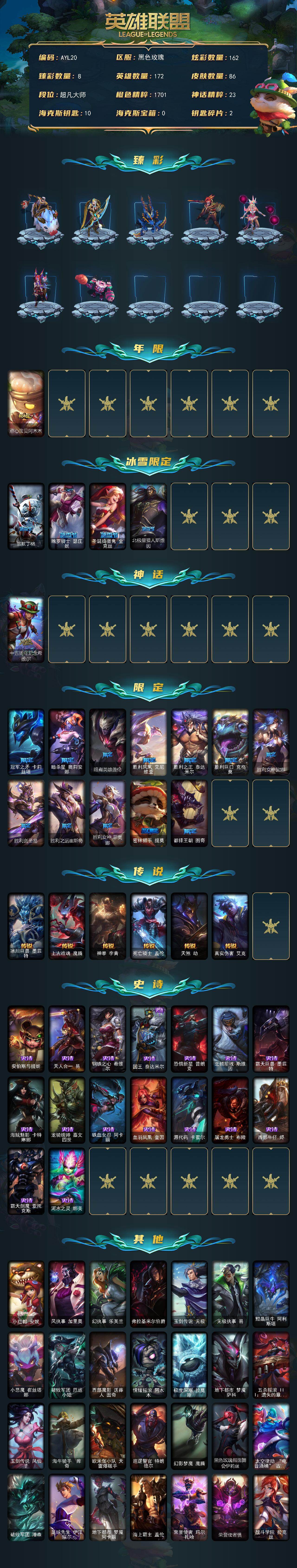 [14429221]可二次【店主推荐捡漏号!可直接换绑】大师段位-172英雄-86皮肤-162炫彩-0终极-1神话-17限定-6传说-16史诗