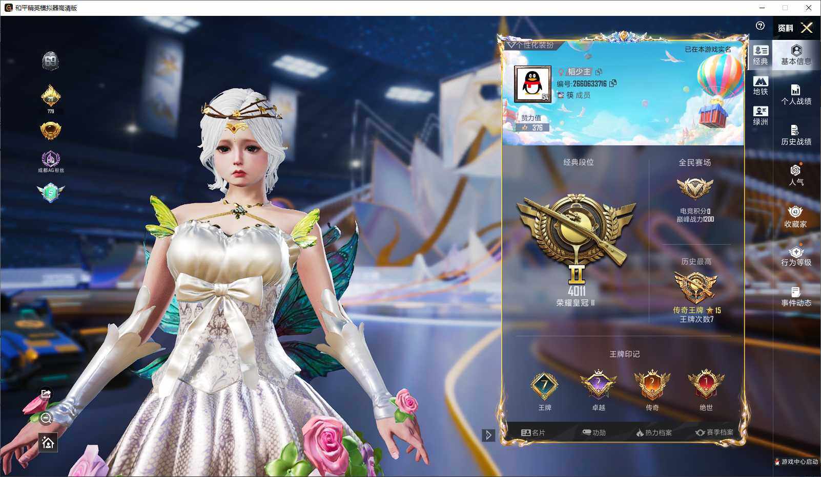 - [12231766]V6 5传说 120英雄 117皮肤 可修改实名 女号 优质装备:黄金射手座,一念神魔,涂山容容 珍宝阁皮:蔷薇恋人 限定皮:愿照·千秋盛(女娲年限),逐霄战戟,鸣野蒿,诗剑行,匿光追影者,时之奇旅-妲己 史诗皮:龙之律动,撼地雄心,破空之剑,埋骨钱,百相守梦-黄忠,织梦人,特工魅影,冰冠公主,女仆咖啡,水果甜心,天才门将,心灵骇客,暗隐猎兽者,鬼剑武藏,心灵战警,拒霜思,缤纷独角兽,曙光守护者,箭羽风息,鹰眼统帅,魅力维加斯,未来纪元-赵云