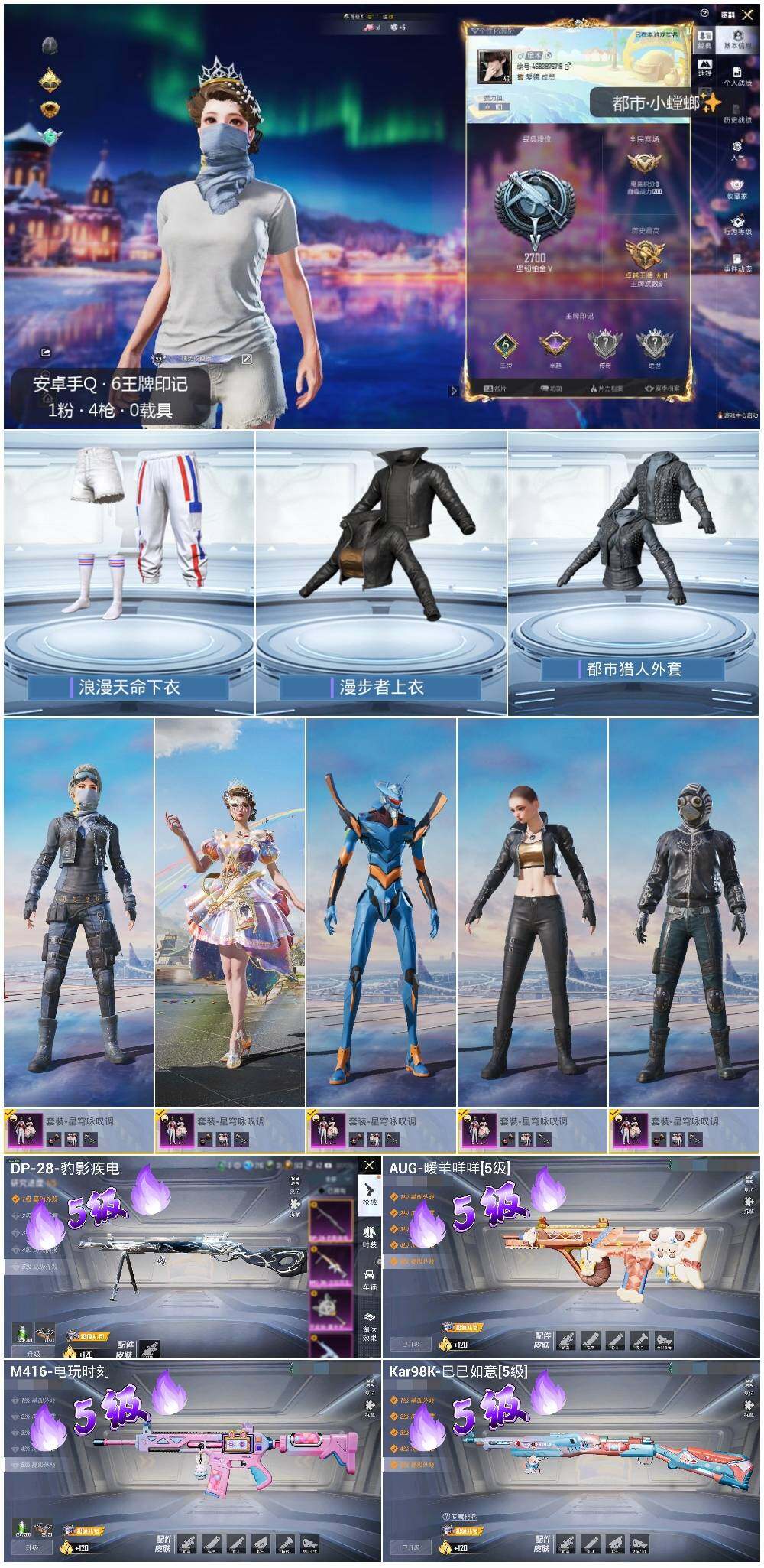 - [12956647]素材身法号/地铁满天赋 安卓 手Q-1神装-8粉装-13特效枪-2载具-7粉色飞行器-6.8w热力值-9王牌印记-122套装-198枪皮【红色神装等级】:幽焰骑士-维塔(二级)【热门品类】:粉装-梦幻火箭,套装-龟仙人【粉色载具】:宾利飞驰(布罗德盖棕双色),幽焰风驰摩托车【粉色套装】:粉装-梦幻火箭,角色-星云暗核,粉装-憨憨奶龙,粉装-蜜语绒猫,角色-光极星,套装-创世·救赎,角色-冷漠罗丽,角色-羊梦糖心【粉色枪皮等级】:AKM-幽焰骑士(三级),SCAR-L-锦绣绵绵(五级),SCAR-L-魔童闹海 哪吒(三级),M416-电玩时刻(五级),GROZA-镜光银凌(五级),M762-青锋波束(五级),UMP45-量子极限(五级),Kar98K-巳巳如意(五级),M24-镜域双华(三级),AMR-鸢尾晶梦(七级),SPAS-12-蜜语绒猫(七级),DP-28-豹影疾电(五级),平底锅-喜羊羊与灰太狼(三级)【粉色飞行器】:梦幻火箭飞行器,繁龙极客飞行器,镜域双华-灵镜之阶,幻海精灵飞行器,幽焰列车飞行器,凤舞九天飞行器