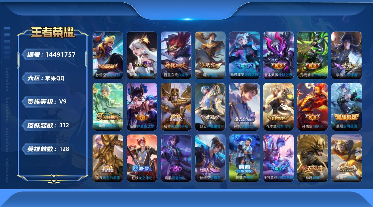 [14491757]按键6 积分夺宝 270苹果Q-V9-312皮肤-1典藏皮肤-1典藏英雄-16传说-86史诗