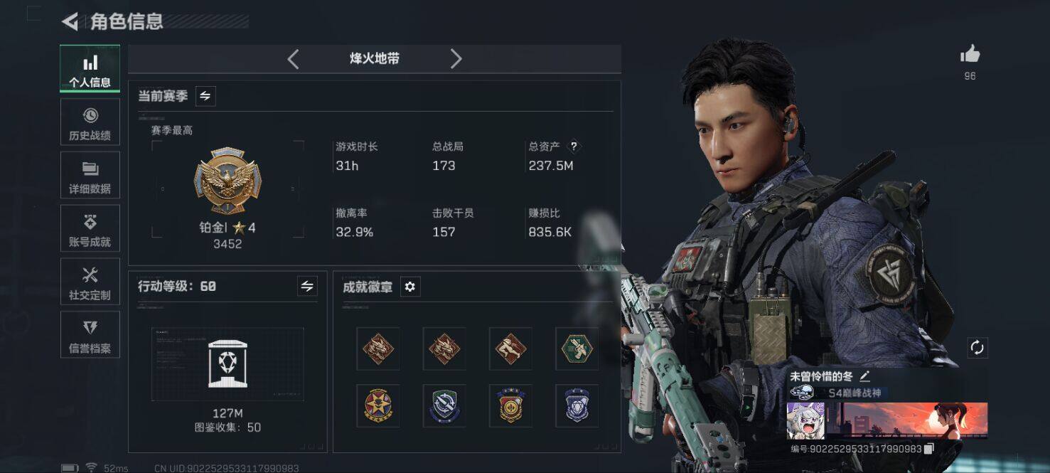[14511499],【店主推荐捡漏号!可直接换绑】24174k哈伏币-204m流动资产-60烽火等级-铂金-30战场等级-上等兵