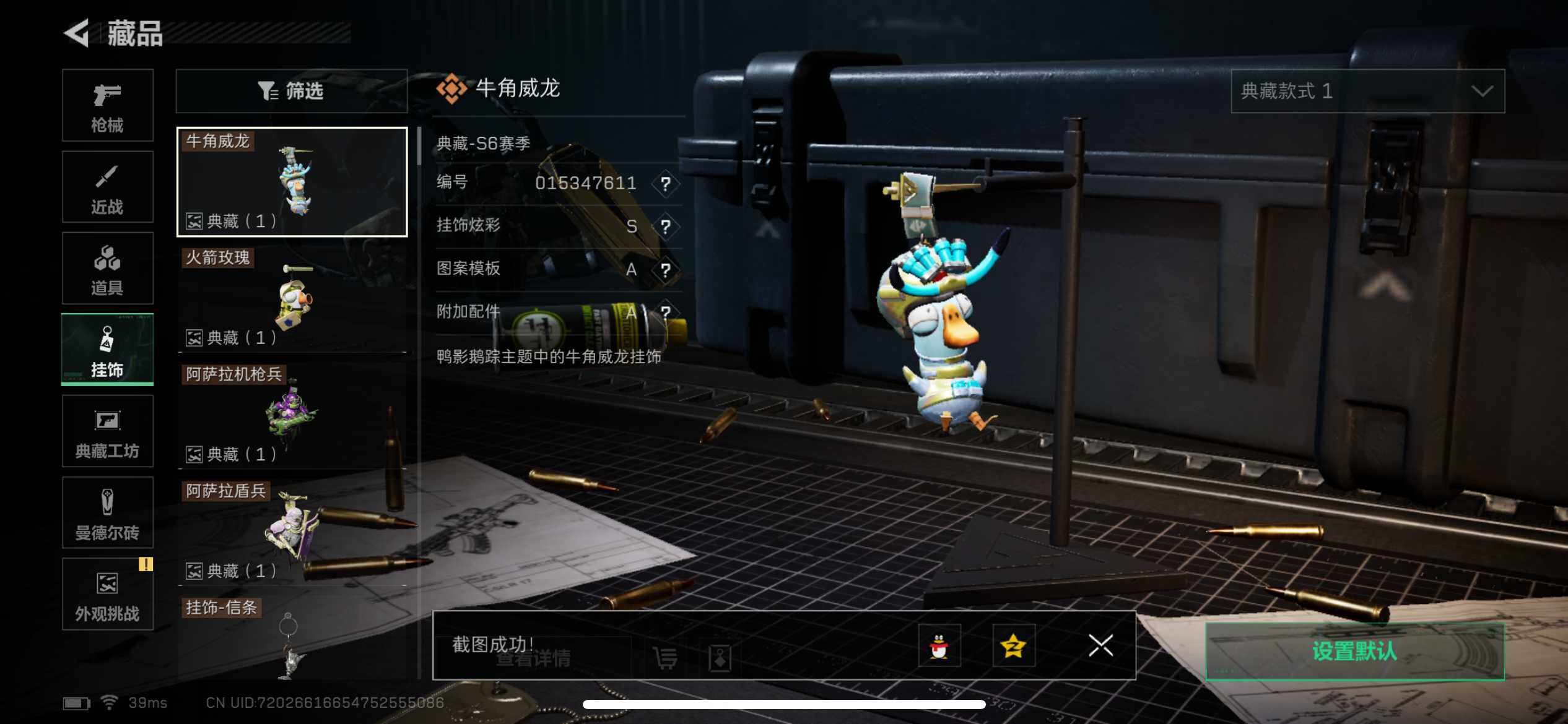 【史诗外观】:AWM狙击步枪-私人定制,AKM突击步枪-林中猎手,ASh-12战斗步枪-无极限,M16A4突击步枪-竞赛选手,AUG突击步枪-蝮蛇,SG552突击步枪-深海恐惧,SCAR-H战斗步枪-囚徒,G3战斗步枪-流沙送葬,AS Val突击步枪-典狱官,AS Val突击步枪-百步穿杨,腾龙突击步枪-无垢,K437突击步枪-守护者,MP5冲锋枪-深海恐惧,MP5冲锋枪-战术竞备,MP5冲锋枪-竞技风,Vector冲锋枪-阿萨拉文明,Vector冲锋枪-猎鳄行动,Vector冲锋枪-异域战争,SR-3M紧凑突击步枪-荒野求生,SR-3M紧凑突击步枪-战术竞备,勇士冲锋枪-深海恐惧,勇士冲锋枪-工业狂潮,MP7冲锋枪-无垢,MP7冲锋枪-守护者,M1014霰弹枪-林中猎手,S12K霰弹枪-曙光,PKM通用机枪-荒野求生,M250通用机枪-囚徒,Mini-14射手步枪-守护者,SVD狙击步枪-荒野求生,PSG-1射手步枪-无垢,SV-98狙击步枪-林中猎手,SV-98狙击步枪-囚徒,M700狙击步枪-竞技风,M700狙击步枪-蝮蛇,M700狙击步枪-百步穿杨,M700狙击步枪-哈夫克警备,AWM狙击步枪-无极限,沙漠之鹰-曙光,复合弓-守护者