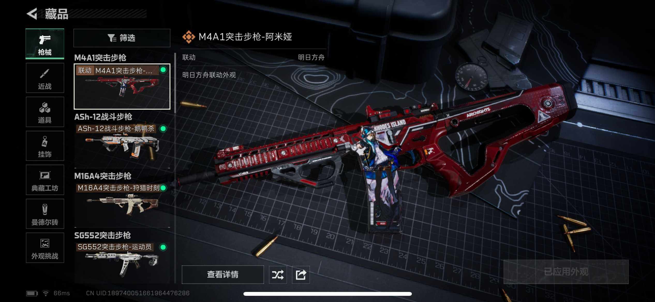 【传说外观】:M4A1突击步枪-阿米娅,ASh-12战斗步枪-鹅鸭杀,M16A4突击步枪-狩猎时刻,SG552突击步枪-运动员,AK-12突击步枪-特斯拉线圈,SCAR-H战斗步枪-启航,G3战斗步枪-狩猎时刻,G3战斗步枪-骑士,CAR-15突击步枪-阿米娅,KC17突击步枪-电锯惊魂,Vector冲锋枪-狩猎时刻,Vector冲锋枪-能天使-午夜邮差,UZI冲锋枪-特斯拉线圈,SR-3M紧凑突击步枪-特斯拉线圈,勇士冲锋枪-能天使-午夜邮差,QCQ171冲锋枪-鹅鸭杀,M250通用机枪-骑士之心,QJB201轻机枪-鹅鸭杀,复合弓-黑·天际线
