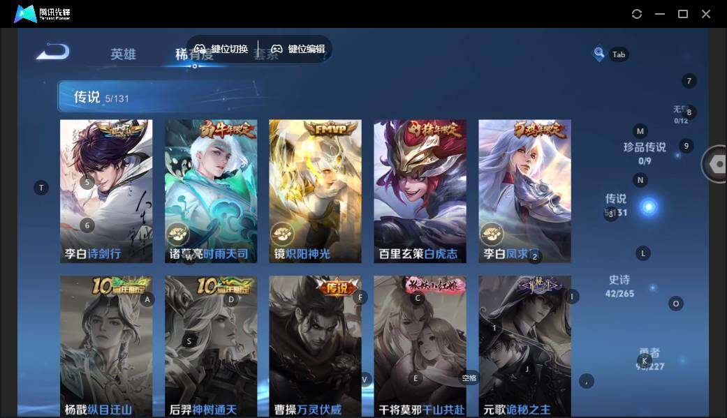 - PX_2113153-Q/尊贵铂金/385皮肤/126英雄/5典藏/0珍品无双/0无双/4珍品传说/29传说/114史诗/10稀有英雄 【4 珍品传说】酷洛米之心 安琪拉,大耳狗之梦 瑶,朽木白哉 暃,黑崎一护 宫本武藏, 【5 典藏皮肤】鸣剑·曳影 李白,天鹅之梦 小乔,倪克斯神谕 武则天,无限飓风号 夏侯惇,赤影疾锋 关羽, 【29 传说皮肤】胖达荣荣 梦奇,启明星使 虞姬,前尘镜 娜可露露,