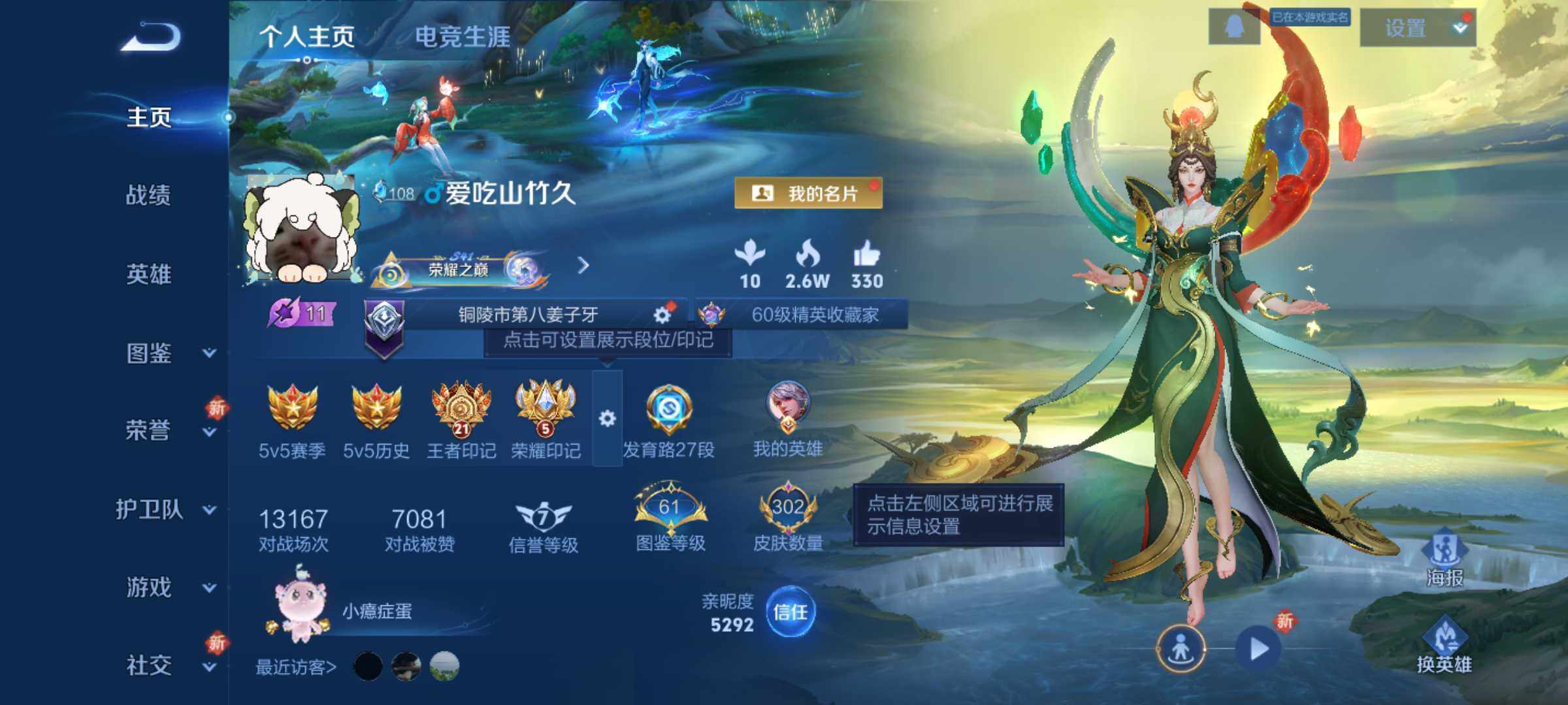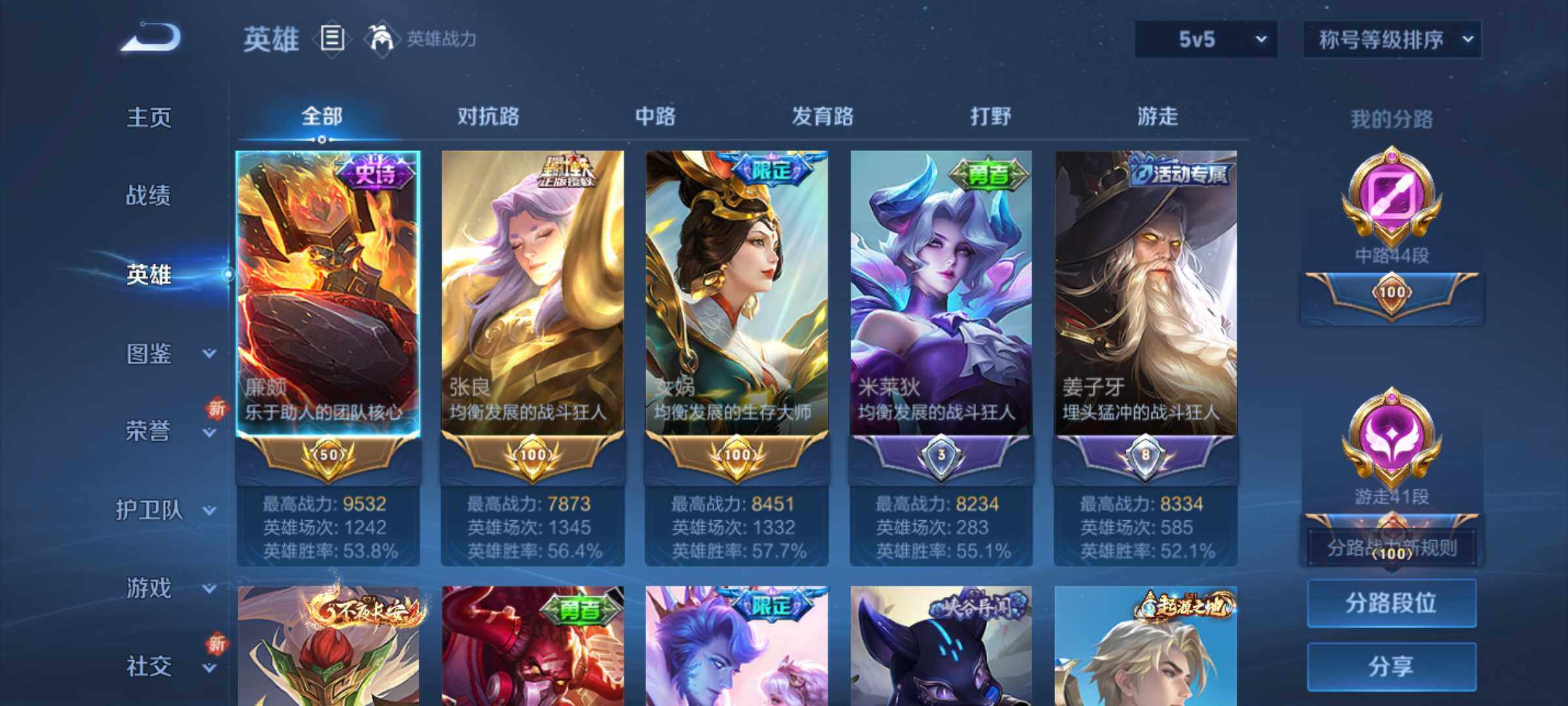 [14518505]可二次【店主推荐捡漏号!可直接换绑】/中路44段/游走41段 安卓Q-V6-最强王者段位-126英雄-302皮肤-1典藏皮肤-4传说-70史诗