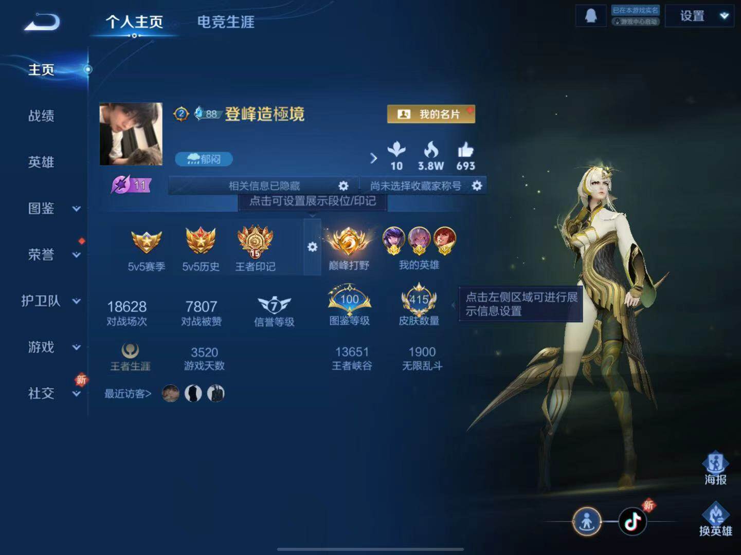 [14539014]万战老虎 影 霏 马超 金标阿古朵打野64段 按键26 苹果Q-V9-415皮肤-2典藏皮肤-3珍品传说-40传说-124史诗