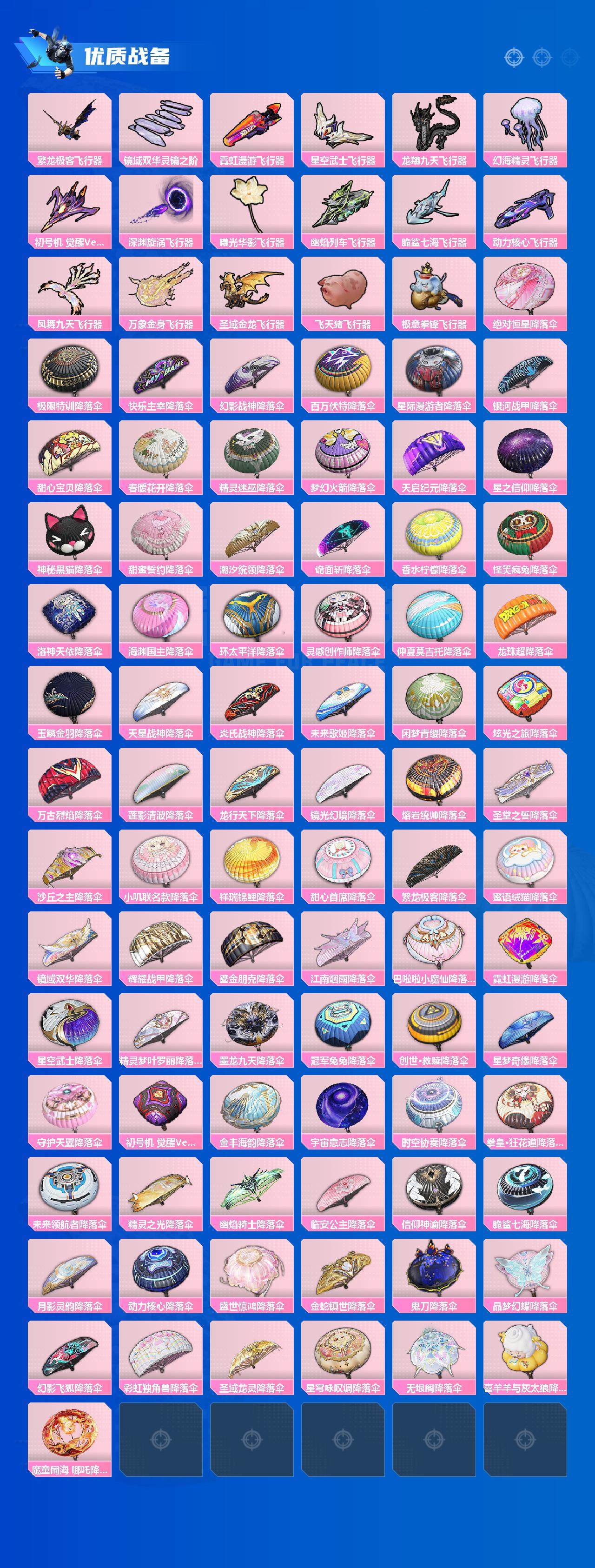 【粉色载具】:路特斯EVIJA(电光紫),玛莎拉蒂Ghibli(金),宾利欧陆GT敞篷(深空蓝),宾利添越(彩虹光),仰望U7(雷霆紫),宝马X6 M(脉冲绿),布加迪威龙(星云粉),帕加尼imola(星空蓝),星河领航(炫晶粉),合金龙骨(红),糖心拉力赛车(波动紫),疾风龙骑,幽焰风驰摩托车,盛世惊鸿摩托车,踏焰逐风摩托车,鬼马风驰,空客H135-蔚蓝之翼,僚机-圣域龙宝,快艇-塞莎KL27(霓虹粉),赤兔,照夜玉狮子,星梦玉骢,护世瑞兽