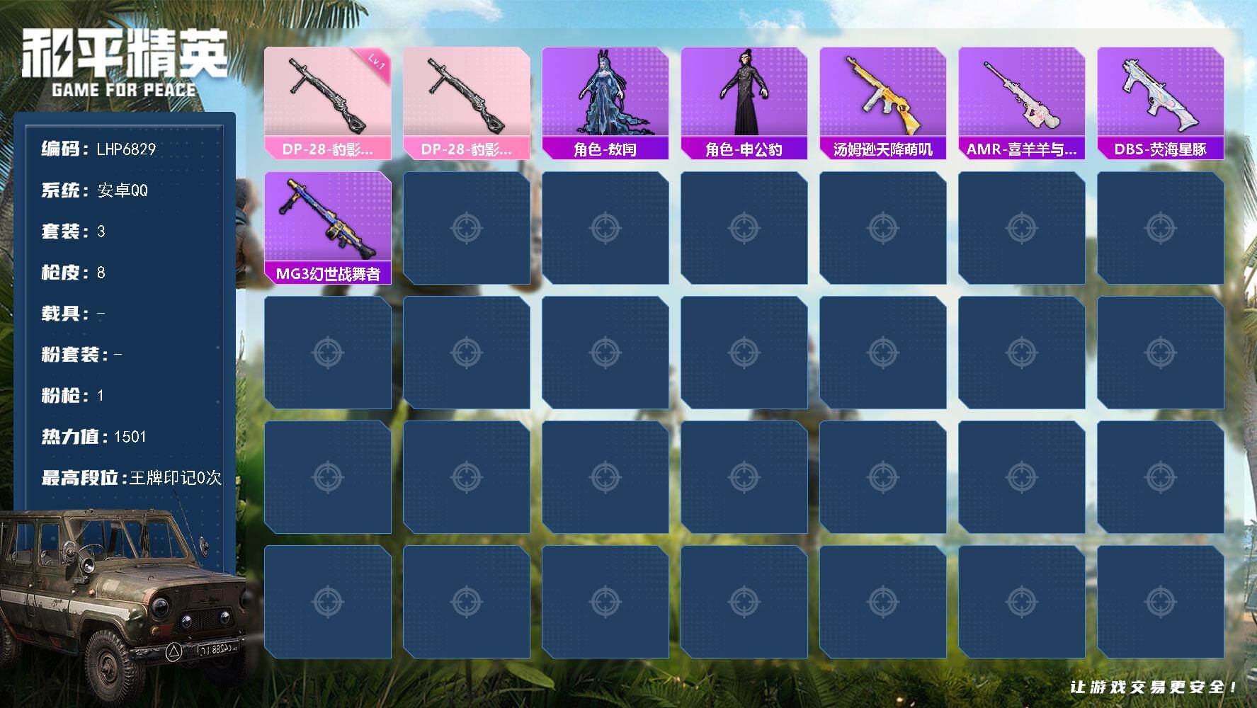 - [14894611]苹果 手Q-1粉装-4特效枪-0载具-1粉色飞行器-56371热力值-18王牌印记-170套装-201枪皮 【热门品类】:绝对防御上衣,套装-浪漫天命,套装-奇异狩猎者,套装-龟仙人 【粉色套装】:粉装-星穹咏叹调 【粉色枪皮等级】:AKM-绿萝繁花(五级),Kar98K-巳巳如意(五级),Mk14-甜梦熊击(五级),DP-28-豹影疾电(五级) 【粉色枪皮】:AKM-绿萝繁花,Kar98K-巳巳如意,Mk14-甜梦熊击,DP-28-豹影疾电 【粉色降落伞】:环太平洋降落伞,仲夏莫吉托降落伞,星穹咏叹调降落伞 【稀有套装】:套装-龟仙人,套装-巳巳如意,角色-光矢逐梦,套装-紫幽梦,套装-蓝冰羽,套装-星影赞美诗,套装-云朵鹅,套装-雪绒豹,套装-朱霞炽焰,套装-凌霄紫焰,角色-绯色魅影,套装-炫彩糖果 【稀有枪皮】:AUG-冰晶雪宝,AKM-彩虹符号,AKM-影袭,AKM-环太平洋,AKM-破晓战魂,AKM-虎虎生威,AKM-霓虹街区,AKM-龙的传人,M16A4-幻世战舞者,M16A4-甜心亚梦,M16A4-红色方程式,M16A4-蓝色火焰,SCAR-L-夜灯,SCAR-L-玉兔迎春,SCAR-L-红色方程式,M416-夜灯,M416-糯团青竹,M416-红色方程式,M416-绯红前夜,M416-蓝色火焰,GROZA-异彩先驱,GROZA-影袭,GROZA-懵萌河马,GROZA-田园牧歌,AUG-天降萌叽,AUG-怪笑疯兔,AUG-耀粉歌者,QBZ-飞驰魅影,M762-天降萌叽,M762-彩虹符号,M762-暗夜鎏金,M762-瑞龙福将,M762-绯红前夜,M762-云朵鹅,Mk47-妙红点点,G36C-懵萌河马,G36C-星穹咏叹调,AC-VAL-甜心亚梦,蜜獾-天降萌叽,蜜獾-娇憨猪猪,蜜獾-绯穹魔姬,ARX-凌霄紫焰,UZI-啾咪啾咪,UZI-天降萌叽,UZI-娇憨猪猪,UZI-炫彩节奏,UZI-红色方程式,UMP45-夜灯,UMP45-快乐主宰,UMP45-海渊国主,UMP45-涂山之恋,UMP45-蓝色火焰,Vector-生命誓言,Vector-田园牧歌,汤姆逊-天降萌叽,汤姆逊-异彩先驱,汤姆逊-耀粉歌者,MP5K-异彩先驱,AKS-74U-鬼刀,JS9-凌霄紫焰,P90-飞驰魅影,P90-巳巳如意,Kar98K-彩虹符号,Kar98K-炫彩节奏,