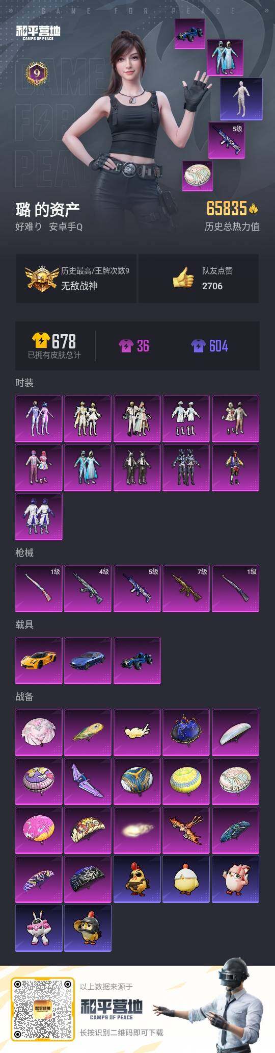 [14567120]可二次【店主推荐捡漏号!可直接换绑】/素材身法号/老木乃伊/无敌战神框1 安卓 手Q-无敌战神框-11粉装-5特效枪-3载具-4粉色飞行器-6.5w热力值-9王牌印记-129套装-188枪皮【热门品类】:粉装-雪国幻梦,粉装-梦幻火箭,套装-浪漫天命,套装-冥河战士,套装-小丑鱼,套装-胖达圆圆,套装-金羽特工,套装-龟仙人,套装-暗影哥特,套装-粉红小猪【粉色载具】:路特斯EVIJA(星际黄),玛莎拉蒂Ghibli(蓝),合金龙骨(蓝)【粉色套装】:粉装-数码大师,粉装-宝贝奶油派,粉装-天使彩虹糖,粉装-雪国幻梦,粉装-梦幻火箭,粉装-天禅智恒,粉装-新星烈龙,粉装-苍蓝魅影,粉装-海盐物语,粉装-筑梦精灵,粉装-圣光天使【粉色枪皮等级】:SCAR-L-青春物语(五级),M416-五爪金龙(七级),M762-激战未来(四级),Kar98K-伏魔团(一级),Kar98K-巳巳如意(一级)【粉色飞行器】:梦幻火箭飞行器,齐天大圣飞行器,风花雪月飞行器,雀灵庇佑飞行器