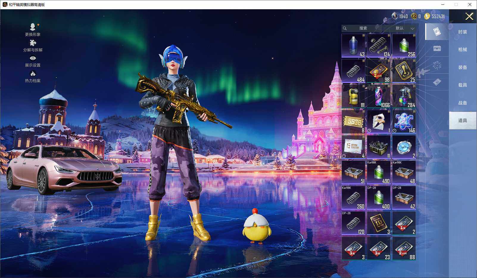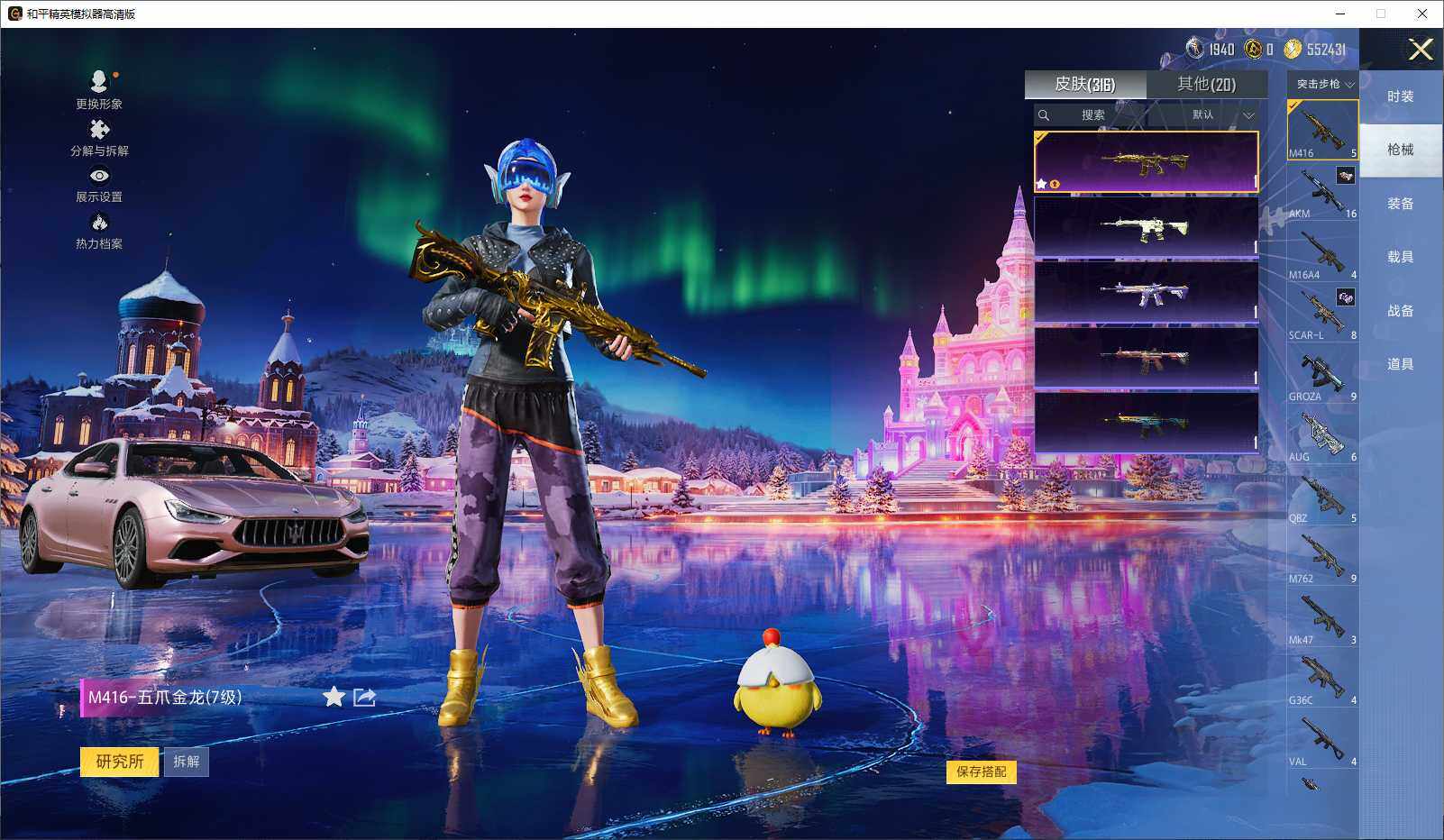 M416-五爪金龙,M762-青锋波束,Kar98K-巳巳如意,DP-28-暗夜鎏金,破片手榴弹-热量炸弹