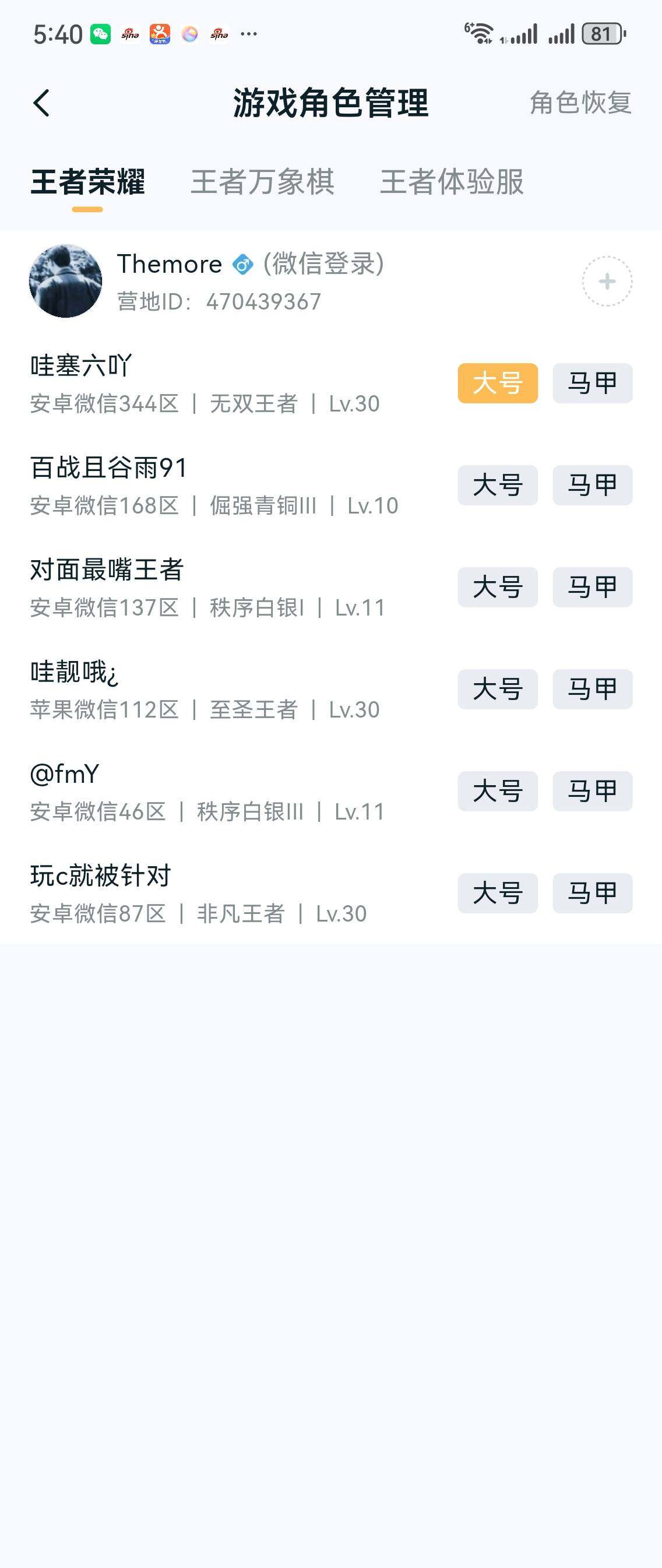 [14611278]安卓WX-发育路51段,金标万战后裔,金标万战苍-最强王者段位-126英雄-212皮肤-1典藏皮肤-7传说-34史诗