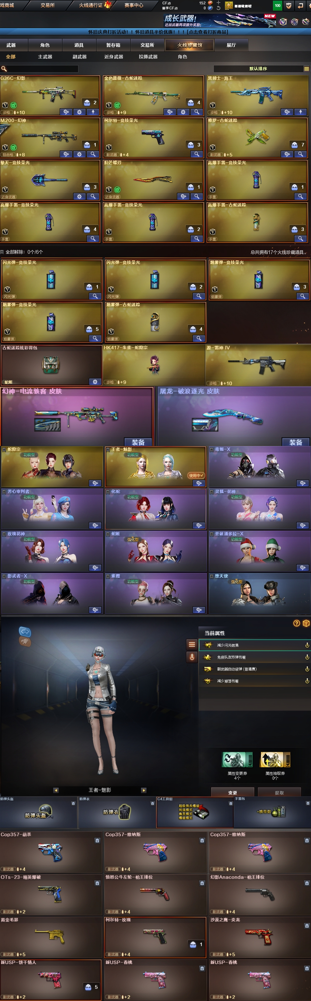- [13918050]重庆一区-55V-4王者-0炫金 【热门武器】:王者幻神,QBZ03-金色蔷薇*3,M200-竞技荣光*2,白虎之魄,荣耀世冠-火麒麟,裁决-雪莉杨,炽芒蝶刃 【王者炫金武器】:王者之魄,白虎之魄,王者幻神 【音效卡】:M4A1-雷神音效卡 【皮肤】:白虎-AG-CFPLS20冠军,金色蔷薇-Heartshot皮肤,金色蔷薇-破浪逐光 皮肤,雷神-化蛇 皮肤,雷神-神秘按键 皮肤,火麒麟-平天大圣,毁灭-英雄计划 皮肤,黑骑士-AG-S4冠军典藏,轻型军用手斧-再燃火线 【角色】:月兔特工,王者雨墨,乔伊教练,修道士,炽天使,虎妞,0号玩家,龙儿,潘多拉-甜心教官,蛇姬,蜀雪,影武者-X 【人偶武器】:裁决-雪莉杨,AWM-灵狐-15周年嘉年华,生化手雷-机甲核心*2,迷你艾比 【英雄级武器】:AK47-火麒麟*4,M4A1-雷神*2,AK47-无影,QBZ03-金色蔷薇*3,荣耀世冠-火麒麟,Barrett-毁灭*2,M200-竞技荣光*2,AA-12-雷霆,沙鹰-天神*2,柯尔特-竞技荣光,麒麟刺,擎天-竞技荣光*4,炽芒蝶刃,高爆手雷-竞技荣光*8,闪光弹-竞技荣光*8,烟雾弹-竞技荣光*9 【道具】:CFS限定背包,亚洲杯纪念炫彩背包,女皇终结者-魔龙之吻,绿色巨人,灵魂忍者,迷雾幽灵,夺命之镰,防化服*2,枪王排位28赛季金色流光,枪王排位29赛季金色流光,语音特效-生化,萌萌小葵表情,EP战队名片,EP战队喷图,防弹头盔*2,防弹衣*2,C4工具钳*2,手雷包*2 【特殊枪械】: