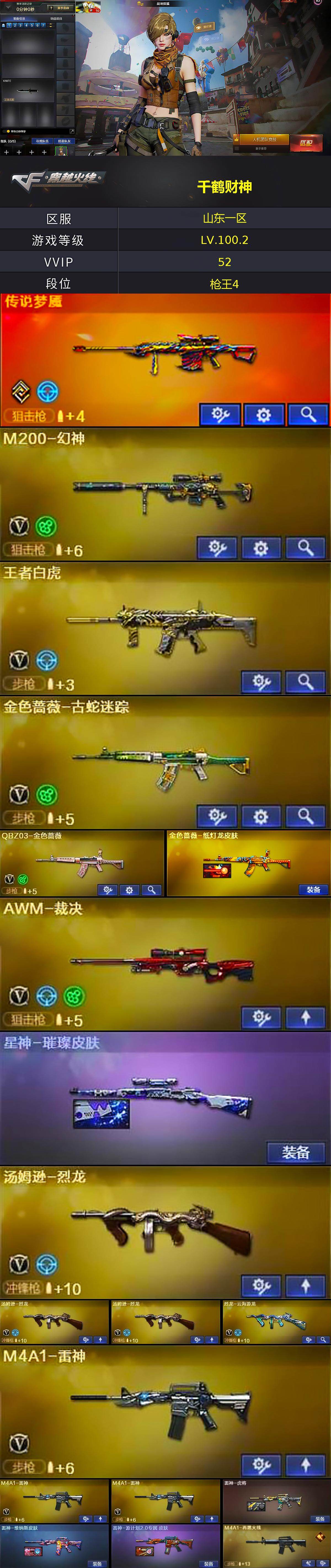 【热门武器】:传说梦魇,QBZ03-金色蔷薇,M200-幻神,金色蔷薇-古蛇迷踪,修罗-古蛇迷踪,毒蜂,M4A1-黑骑士,汤姆逊-烈龙*3,加特林-炼狱,雷神-小红