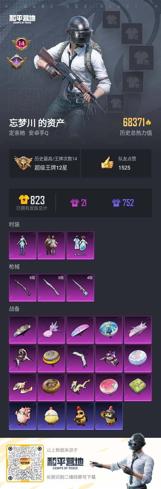 - PX_2105670-可二次 等级61 126套装 173枪皮 12王牌印记 热力值56015 10粉 4特效枪 梦幻火箭 满级级M416-五爪金龙 满级级SCAR-L-纯梦嫁纱 满级UMP45-恐龙拽拽 满级Kar98K-巳巳如意 第五大道 霞光圣骑 寒光使者 星穹咏叹调 橘柚倾心 薄荷物语 海盐物语 天之羽翼 幻影战神 深海小丑鱼 迅捷狂鲨 角色-风玲 套装-呆萌铁蟹 套装