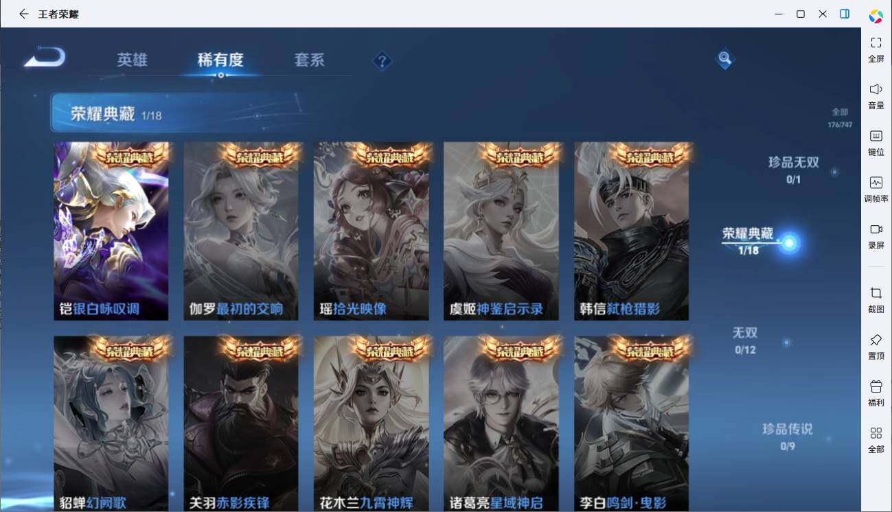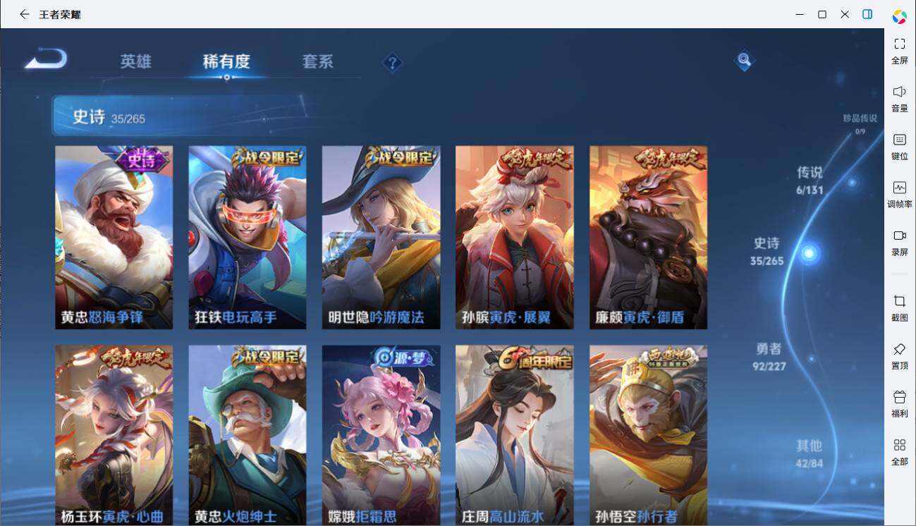 - [11819454]V10 3典藏 1无双 50传说 126英雄 496皮肤 典藏英雄武则天 可修改实名 连体和平 优质装备:全息碎影(猴子典藏),星域神启(倪克斯贼亮),韩信群星魔术团(韩信无双),拾光映像(瑶典藏),黄金狮子座,黄金射手座,冠军飞将,云鹰飞将(小将军),绛天战甲(鸡嘴战神),黄金白羊座,猫影幻舞,久胜战神,炽阳神光,一念神魔,云霓雀翎,末日机甲-孙尚香(绿蚂蚱),地狱火,仲夏夜之梦(大飞蛾),音你心动-小乔,零号·赤焰,海洋之心,地狱之眼,飞鸢探春,音你心动-周瑜,胖达荣荣,李逍遥,乞巧织情,时之恋人-刘备(电焊工),游龙清影(小青龙),淬星耀世,超时空战士-狄仁杰,碎云,山海·炽霜斩(李信年限),山海·琳琅生(小乔年限),山海·苍雷引(电光曜子),艾琳觅芳踪,琥珀纪元马超 传说皮:乘龙·问璇玑(孙尚香年限),乘龙·铭钟鼎(赵云年限),乘龙·淬吴钩(孙策年限),貂蝉曦玄引,吕布曦玄引,典韦战鼓燎原,落雪白狼,幻光神枪 珍宝阁皮:妄想食味,胡桃夹子,女武神 限定皮:逐霄战戟,鸣野蒿,至尊宝,凤求凰(白切鸡),时之彼端,白鹤梁神女,白晶晶,时雨天司(水龙头),神威(电光马子),飞衡(韩信年限),山海·碧波行(瑶年限),高山流水,齐天大圣,五谷丰年,冰锋战神,天狼运算者,游园惊梦,梁祝,御风骁将(吕布年限),逐梦之星,岱宗(典韦年限),天狼溯光者,天狼征服者,奔雷神使(牛魔年限),祈雪灵祝(雪兔子),天狼绘梦者,李小龙,逐梦之影,朱雀志(守约年限),霸王别姬-项羽,霸王别姬-虞姬,默契交锋-兰陵王,孙行者,一生所爱,大圣娶亲,引擎之心,天魔缭乱,青春决赛季,冰霜恋舞曲,乒乒小将,蜜橘之夏,美猴王,寅虎·心曲(虎婆),寅虎·赤拳(老虎年限),玉兔公主,山海·玄木吟(马可年限) 史诗皮:赞萌露比,鸭鸭历险记-刘禅,化蝶舞,星界战将,灵蛊蚀心,龙之律动,石田雨龙,百相守梦-周瑜,戍鼓铭心,茶境仙,幻珠鲛人,海诺心动手记,破空之剑,蒙犽顽岩魄,怒海争锋,决胜骁骑,蔬乡物语(鲁班七号),曹操夜都魔契,超元猎域,乘龙·聚宝船(安琪拉年限),乘龙·忆丹青(大乔年限),琥珀纪元伽罗,百相守梦-百里守约,百相守梦-黄忠,遇见神鹿,紫霞仙子,苍穹之光,电玩小子(小书包),白龙吟,黄金分割率,特工魅影,千年之狐,永昼,电玩·爆裂旋风,江河有灵,百解令(蒙犽),高渐离燃音魔法,蒙恬荣光圣徽