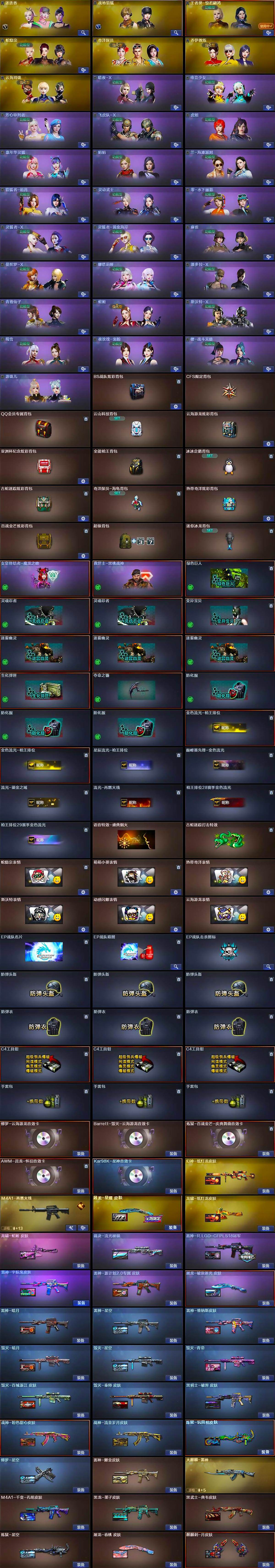 【皮肤】:幻神-纸灯龙皮肤,裁决-流光秘银,雷神-暗月,雷神-星空,雷神-耀金皮肤,雷神-R.LGD-CFPLS18冠军,雷神-宇航兔皮肤,雷神-维纳斯皮肤,雷神-源计划2.0专属 皮肤,M4A1-再燃火线,火麒麟-雷神,毁灭-暗月,毁灭-星空,毁灭-青帝,毁灭-百城浙江 皮肤,毁灭-秦师 皮肤,毁灭-英雄计划 皮肤,M4A1-千变-孔明皮肤,黑龙-墨子皮肤,黑骑士-破界 皮肤,黑武士-典韦皮肤,战神-粉色甜心皮肤,战神-流金岁月皮肤,炼狱-星空,炼狱-玩具枪皮肤,修罗-星空,屠龙-星耀 皮肤,屠龙-春桃 皮肤,屠龙-破浪逐光 皮肤,龙啸-纸灯龙皮肤,龙啸-蛇姬 皮肤,轻型军用手斧-再燃火线,麒麟刺-月皮肤