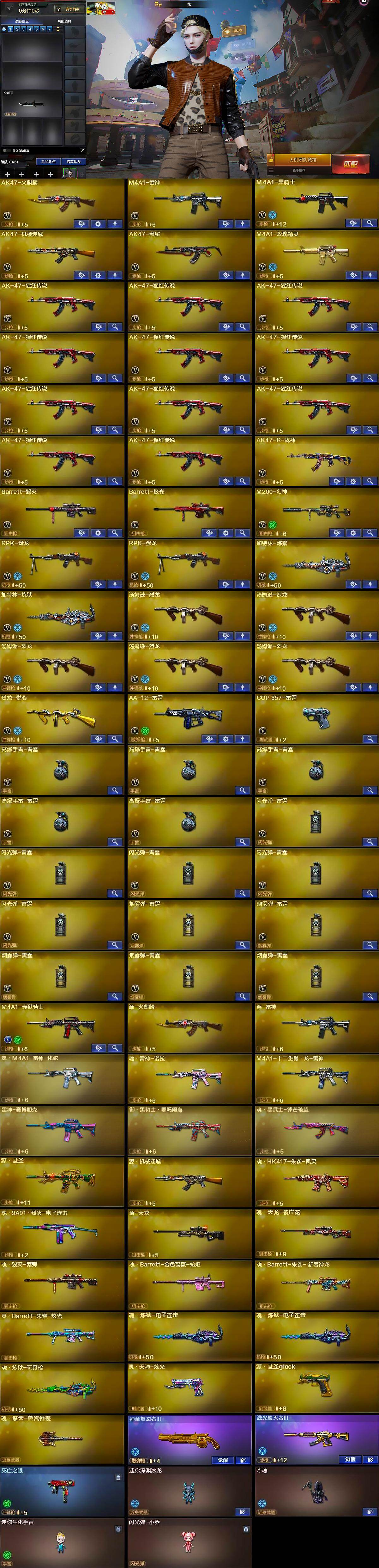 【英雄级武器】:AK47-火麒麟,M4A1-雷神,M4A1-黑骑士,AK47-机械迷城,AK47-黑鲨,M4A1-玫瑰精灵,AK-47-猩红传说*11,AK47-B-战神,Barrett-毁灭,Barrett-极光,M200-幻神,RPK-盘龙*2,加特林-炼狱*2,汤姆逊-烈龙*5,烈龙-悦心-觉醒版,AA-12-雷霆,COP-雷霆,高爆手雷-雷霆*5,闪光弹-雷霆*5,烟雾弹-雷霆*5,M4A1-赤狱骑士