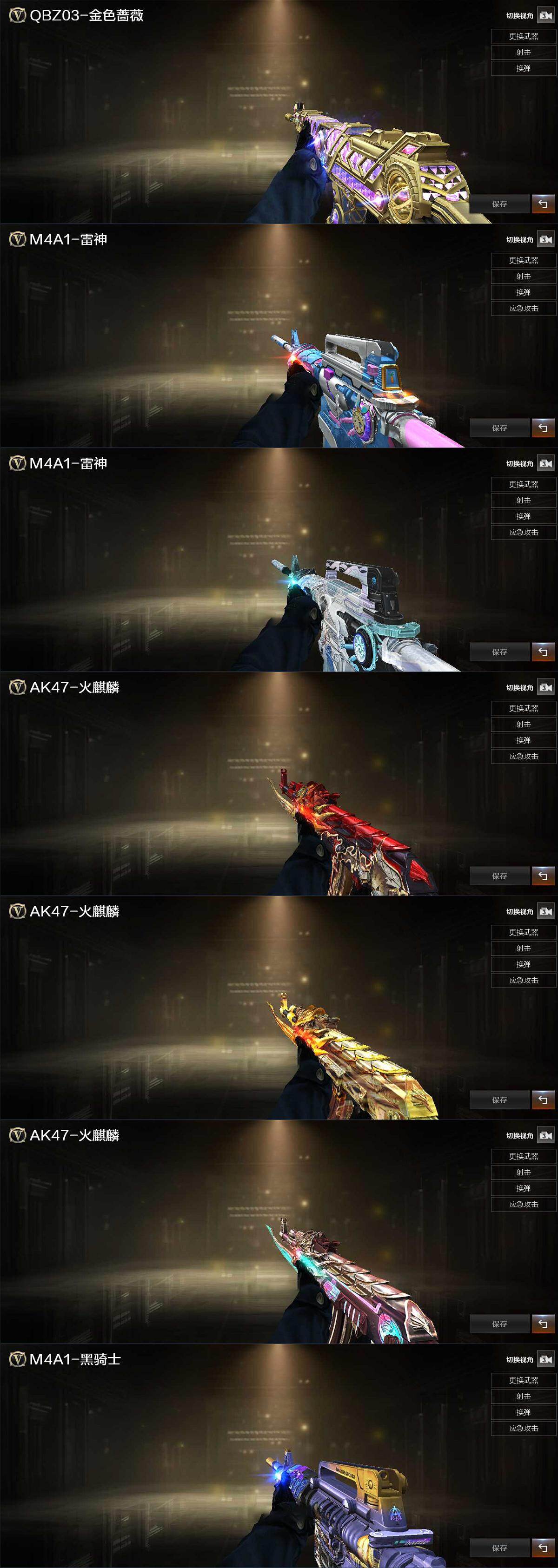 【热门武器】:QBZ03-金色蔷薇,Scar Light-白虎,金色蔷薇-古蛇迷踪,修罗-古蛇迷踪,M200-竞技荣光,Kar98K-星神,M4A1-黑骑士,沙鹰-修罗