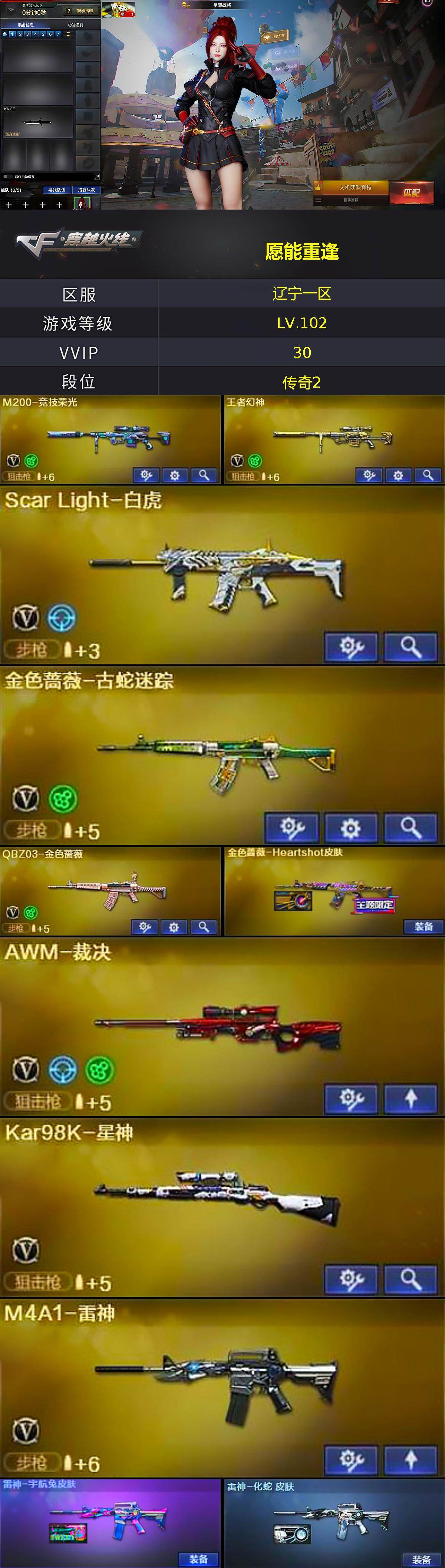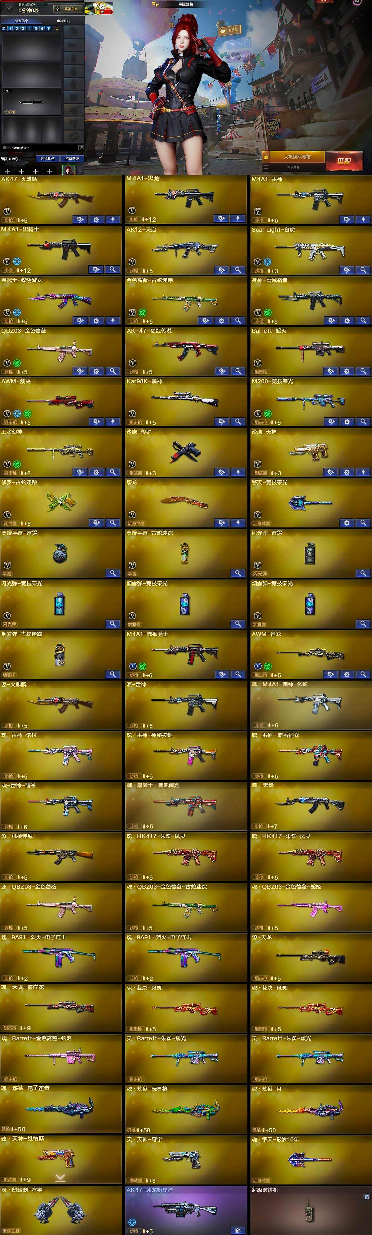 - [12951293]河南一区-36V-9王者-0炫金 【传说武器】:传说梦魇 【热门武器】:传说梦魇,G36C-幻影,QBZ03-金色蔷薇,金色蔷薇-古蛇迷踪,修罗-古蛇迷踪,M200-竞技荣光,柯尔特-冠军之特,Kar98K-星神,M4A1-黑骑士,羊驼玩偶,COP-白鲨,沙鹰-修罗*2,炽芒蝶刃 【音效卡】:屠龙-云海游龙音效卡,M4A1-黑骑士音效卡,Kar98K-星神音效卡 【稀有皮肤】:星神-傲竹金蛇 皮肤,QBZ03-冠军之薇,金色蔷薇-破浪逐光 皮肤,雷神-耀金皮肤,雷神-R.LGD-CFPLS18冠军,火麒麟-平天大圣,黑骑士-暗月,黑骑士-冠军之势,毁灭-暗月*2,天神-暗月,屠龙-荣耀之锋,屠龙-春桃 皮肤,龙啸-冠军之啸,龙啸-纸灯龙皮肤 【角色】:零,电竞教官-云悠悠,战地猎狐,蜀雪,铁骑荣耀,暗黑审判,青霞仙子 【人偶武器】:COP-白鲨,AWM-灵狐-15周年嘉年华 【挑战大师】:神圣爆裂者-末日III 【英雄级武器】:M200-竞技荣光,柯尔特-竞技荣光,烈火-动感闪耀,天神-动感闪耀,屠龙-动感闪耀,手雷-动感闪耀,G36C-幻影,QBZ03-金色蔷薇,金色蔷薇-古蛇迷踪,无影-神兵利器,M4A1-雷神,M4A1-黑骑士,AK47-火麒麟,AK12-天启,Barrett-极光,AWM-裁决,Kar98K-星神,黑武士-锦绣游龙,超新星-热带奇洋,M4A1-赤狱骑士,柯尔特-冠军之特,修罗-古蛇迷踪,沙鹰-天神,沙鹰-修罗*2,炽芒蝶刃,麒麟刺,擎天,龙啸,屠龙,龙啸-热带奇洋 【特殊枪械】:1黑骑士