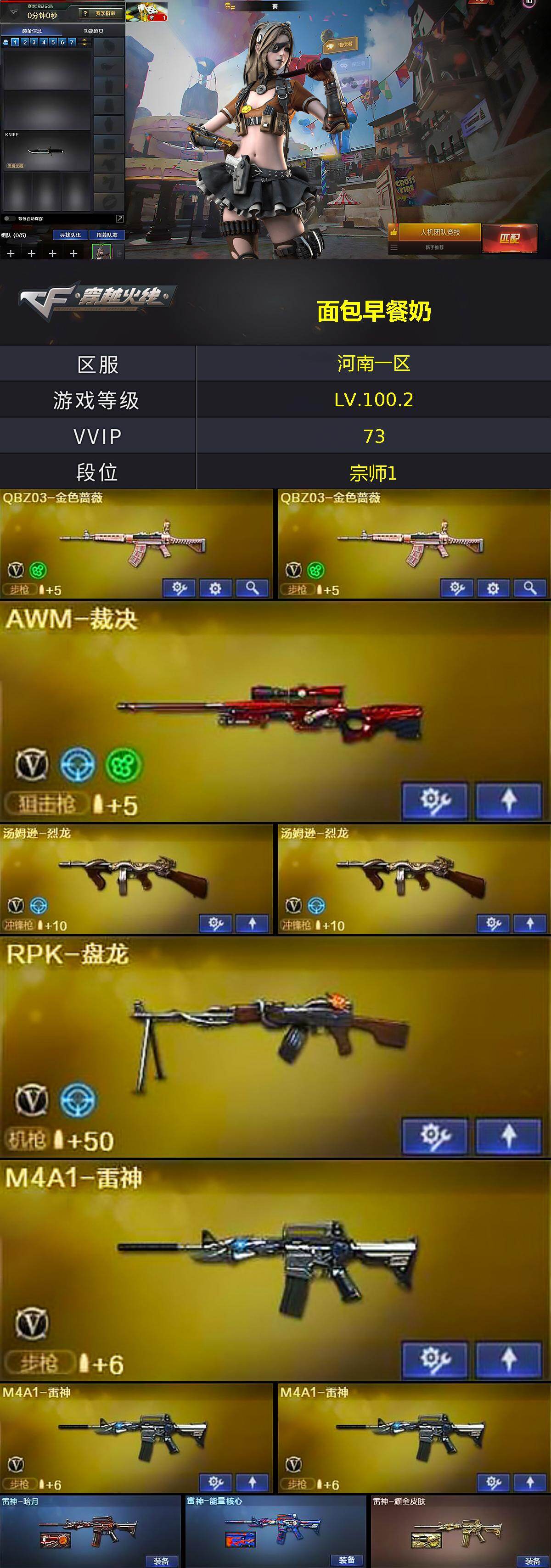 【热门武器】:QBZ03-金色蔷薇*2,死亡之眼*4,M4A1-黑骑士*3,汤姆逊-烈龙*2,RPK-盘龙,沙鹰-修罗*6