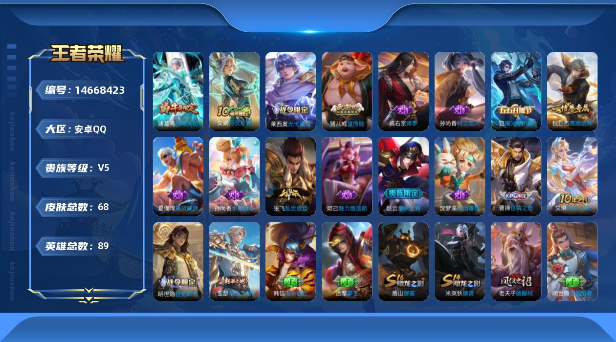 [14668423]qq两个太阳无违规账号 安卓Q-V5--68皮肤-2传说-13史诗