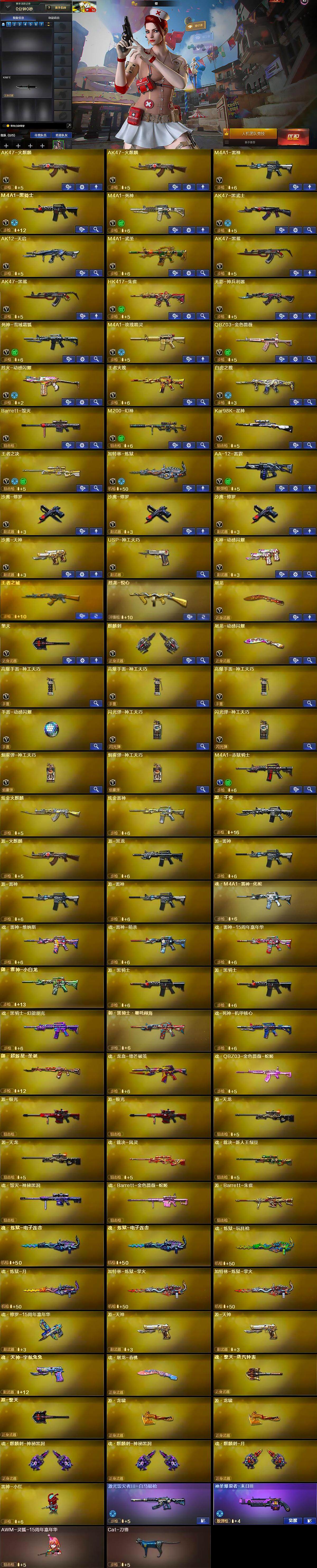 - [12062769]3粉装 5特效枪 7印记 可二次 可修改实名 身法装备:都市猎人,暗影哥特(红眼罩) 优质装备:都市猎人,奇异狩猎者,AKM星际浪客,七级AKM-星际浪客,M416电玩时刻,Kar98K-巳巳如意 热门装扮:赤焰黑爵,音爆索尼克,第五大道,鹰眼刺客,深海小丑鱼,都市猎人 稀有枪皮:MG-36-沧焰双生,DP-28-豹影疾电 五级特效枪:五级Kar98K-巳巳如意,五级DP-28-豹影疾电,五级MG-36-沧焰双生,五级M416-电玩时刻 紫色装扮:田园牧歌,轻风白浪,和煦暖阳,SS22特训,白啸长虹,SS23特训,幻彩翩翩,妙红点点,香榭午后,娇憨猪猪,萌趣咩咩,暖心熊熊,SS21特训,SS31特训套装,冰川特警,冷焰舞者,旭日情侣,SS30特训套装,SS20特训,月影鸳鸯,SS19特训,软羊咩咩,吉莉礼服,甜心亚梦,虚音幻奏,瑞龙福将,团圆交子,SS17特训,SS18特训,都市漫游者,长空猛禽,霓虹街区,风暴特警,荷畔雨呱,缤纷果语,蓝色运动,虎虎生威吉莉,街头潮人,飞行日记,龙腾端午,魅力单车,麻辣教官,黄色伏地魔,黄色运动,黎明保卫者,黑色伏地魔,龙的传人,龟仙人,冰河战士,龙魂突击队,蝶变,香桃花海,沙漠毒蛇,柠萌假日,格斗先锋,沙漠兵团,海岛探路者,幻世战舞者,怒火燎原,战地菁英,探宝勇士,绮丽涂鸦,白色伏地魔,破晓战魂,破蛋小黄鸡,甜蜜告白,福星高照,红色运动,王牌教练,牛气冲天,灰色格斗者,特战英豪,狂沙舞者,SS29特训,先驱飞行员,星途旅人,SS28特训,异域银装,玉兔迎春,竞技名士,暗影哥特(红眼罩),街头风暴,神气柴柴,懵萌河马,SS24特训(SS24特训套装),SS25特训,SS27特训,浪漫天命,小丑鱼,华灯初上,SS26特训,大橘大利,SS32特训服(SS32特训套装),青玉碎影,绯格组合,恋语绒绒,漫步者,贵族骑装,无烬之地,冰冻风暴,光之冒险 优质战备:星途旅人降落伞,江南烟雨降落伞,绯穹魔姬降落伞,极限特训降落伞,千面幻镜飞行器,环太平洋降落伞,暗夜鎏金降落伞,音爆索尼克降落伞,仲夏莫吉托降落伞,幻影战神降落伞,百万伏特降落伞,甜心宝贝降落伞,暗夜玫瑰降落伞