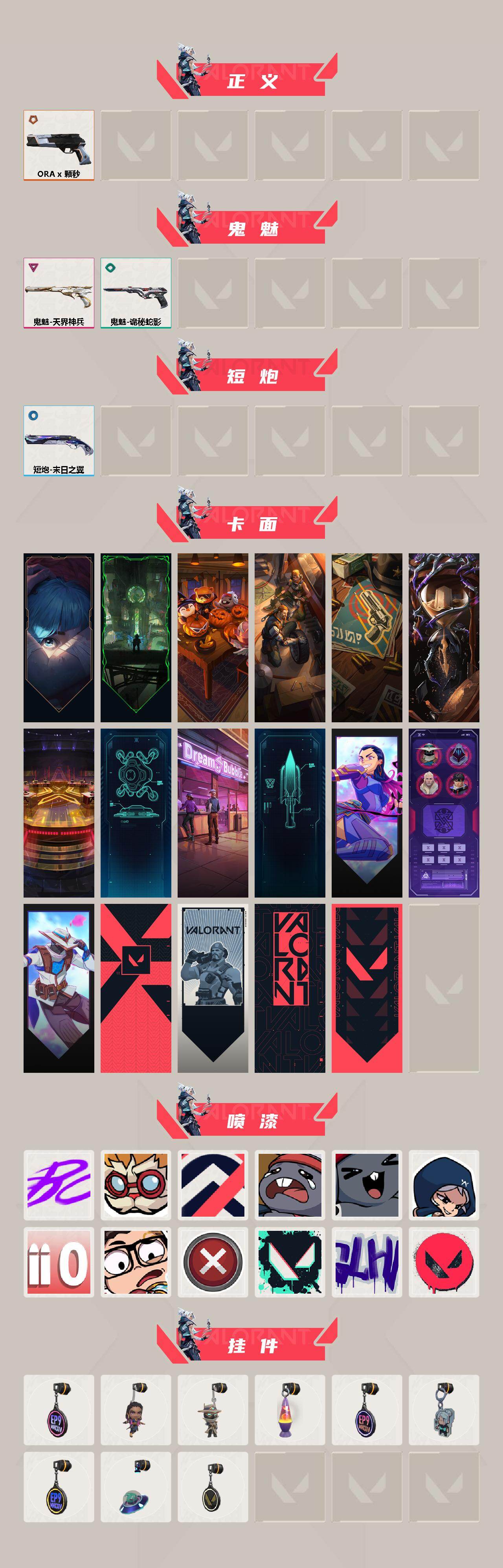 【卡面】:《双城之战》拥抱 卡面,欢迎来到底城 卡面,南瓜盛典 卡面,修车达人 卡面,正义的化身 卡面,时间到 卡面,最高舞台 卡面,声感陷阱设计图 卡面,梦幻奶茶 卡面,零点嗅探设计图 卡面,无畏契约GO!第一卷:芮娜 卡面,清除名单 卡面,无畏契约GO!第一卷:零 卡面,代号红色 卡面,新兵报到 卡面,V契约 卡面,无畏契约 卡面