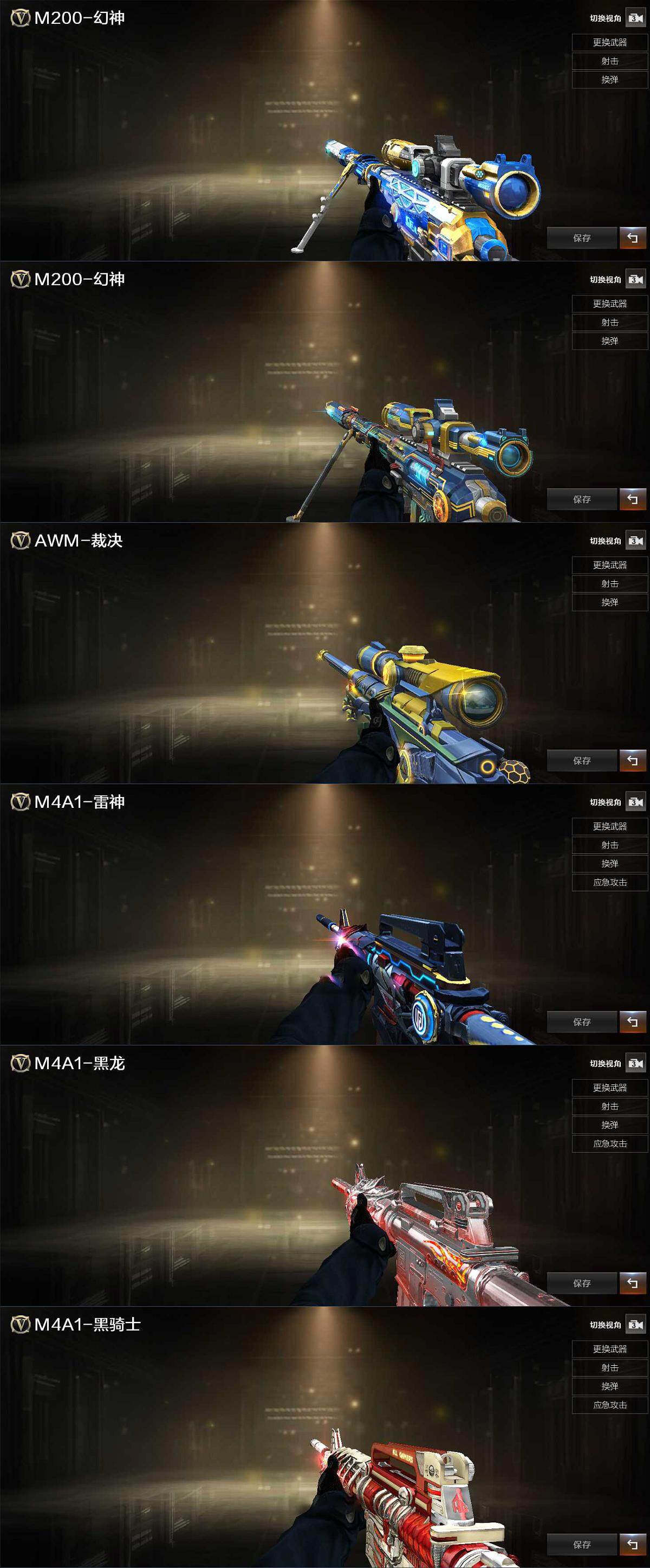 【英雄级武器】:AK47-火麒麟,M4A1-黑龙,M4A1-雷神,AK47-黑武士,AK-47-猩红传说*2,黑骑士-海王,Barrett-毁灭,Barrett-极光,M200-幻神*2,RPK-盘龙,加特林-炼狱,汤姆逊-烈龙,沙鹰-修罗,屠龙,擎天,王者之锋-觉醒版,高爆手雷-雷霆,闪光弹-雷霆,烟雾弹-雷霆