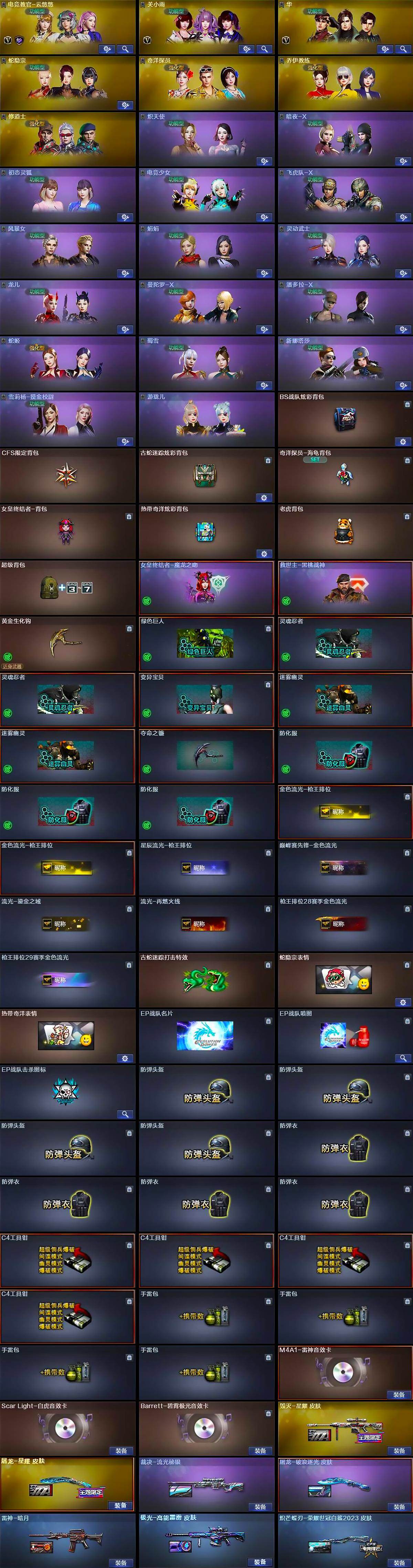 - [11522979]2粉装 3特效枪 21印记 可二次 可修改实名 女号 优质装备:缤纷油彩(猪妹猪脸妹),洛天依,SCAR-L纯梦嫁纱,七级SCAR-L-纯梦嫁纱,Kar98K-巳巳如意 热门装扮:兔兔白日梦,激萌罗小黑,潮萌小黄鸭 稀有枪皮:DP-28-豹影疾电 五级特效枪:五级Kar98K-巳巳如意 二级特效枪:二级DP-28-豹影疾电 紫色装扮:田园牧歌,轻风白浪,和煦暖阳,SS22特训,飞狐塔尔斯,SS23特训,幻彩翩翩,灵蜜圈圈,妙红点点,娇憨猪猪,萌趣咩咩,暖心熊熊,SS21特训,SS31特训套装,人气偶像,军械专家,冷焰舞者,SS30特训套装,SS33特训套装,青涩时光,SS20特训,青春冒险家,潮流游乐家,SS15特训,时空追击者,暴风机械师,SS16特训,银白舞王,SS13特训,治愈之星,科技之星,SS14特训,怪笑疯兔,萌趣颜团子,特种颜团子,SS19特训,吉莉礼服,天籁歌者,瑞龙福将,团圆交子,SS17特训,炫光向阳,异彩先驱,SS18特训,都市魅力,酒红色名流,野性战心,金鼠迎春,长空猛禽,霓虹极客,霓虹街区,青年教官,缤纷果语,耀眼新星,荣耀,蓝彩潮人,蓝色运动,虎虎生威吉莉,街头潮人,飞行日记,龙腾端午,魅力单车,鹤鸣,麻辣教官,黄色伏地魔,黄色名流,黄色运动,黑色伏地魔,龙的传人,龟仙人,冰河战士,龙魂突击队,蝶变,香桃花海,极速红龙,柠萌假日,格斗先锋,橘黑制服,深蓝色名流,滨海假日,幻影武者,夏日音浪,夜莺强袭者,完美偶像,帅气教官,幻世战舞者,怒火燎原,恋恋初桃,战地督导,湖蓝色名流,滨海厨神,绮丽涂鸦,白熊同盟,白色伏地魔,破晓战魂,破蛋小黄鸡,甜蜜告白,福星高照,空岛之星,空投萌叽,竞技达人朋克,红色运动,甜蜜熊情侣,王牌教练,牛气冲天,灰色格斗者,灼焰舞者,炫蓝之夏,牛气满满,猛禽,特殊使命,特训学院,猎鹰,镭射皇者,粉日山川,SS29特训,星途旅人,纯真浪花,热情海星,SS28特训,卖崽青蛙,听雨铃兰,玉兔迎春,巳巳如意,青团波波,糖糖葫芦,棉花软糖,竞技名士,街头风暴,惊鸿侠骨,甜梦熊熊,神气柴柴,懵萌河马,SS24特训(SS24特训套装),绚紫流光,SS25特训,锦衣飞扬,粉红小猪,SS27特训,无暇誓言,明鸳圣池,牛仔情诗,浪漫天命,SS26特训,春光漫游,快闪甜心,萌主吾皇,SS7特训,深蓝冒险家,迷域探索者,SS8特训,大橘大利