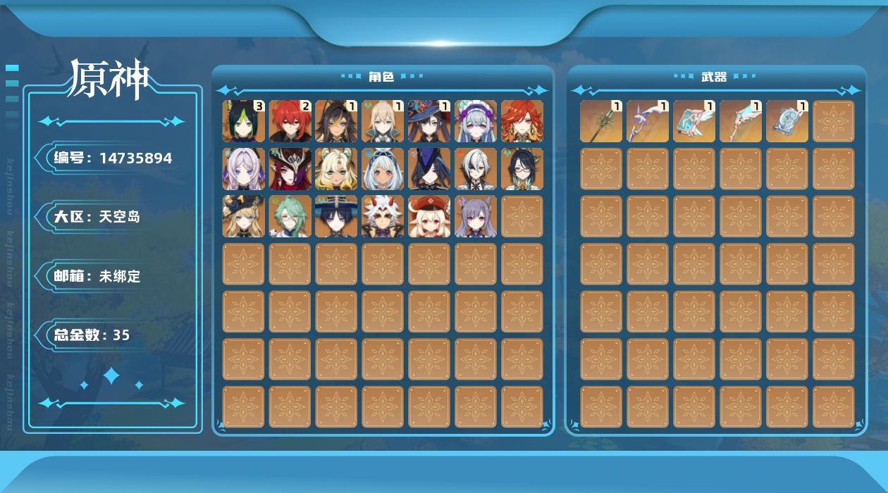 [14735894]57级/35黄/男主/21个五星角色/5个五星武器