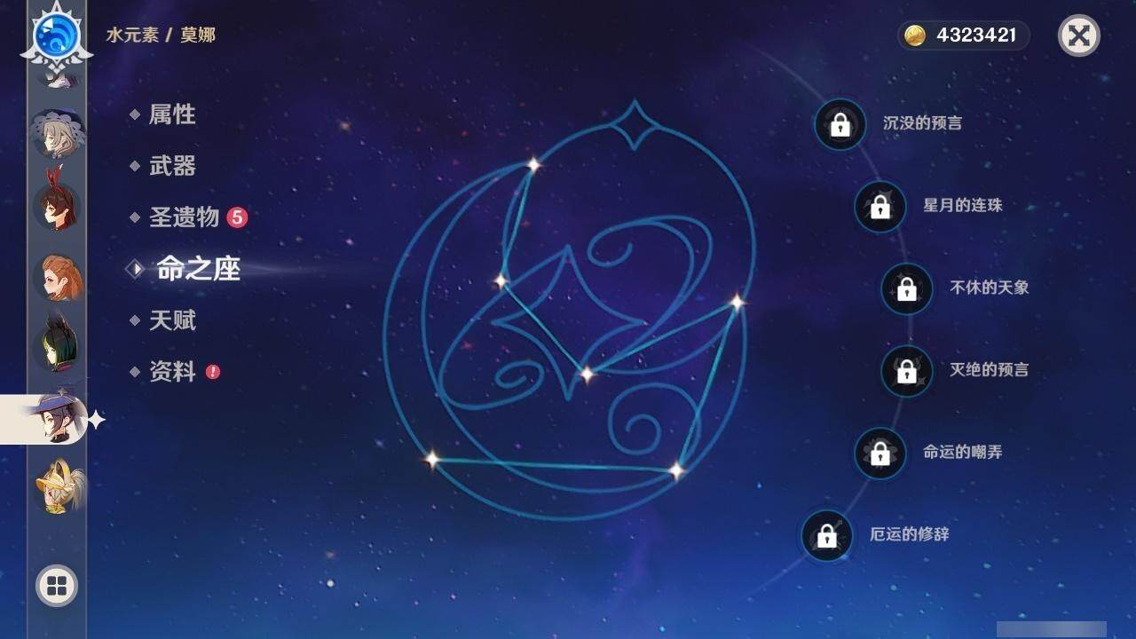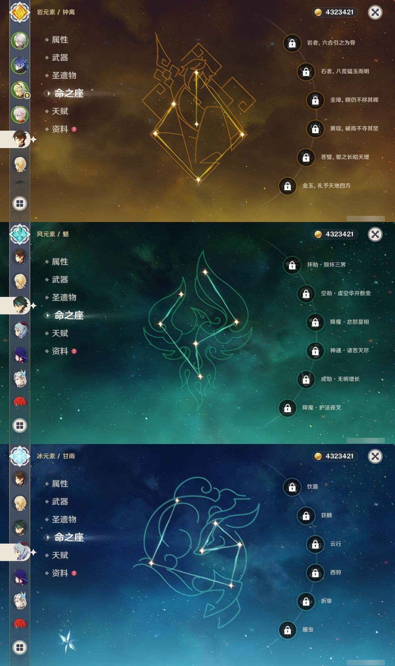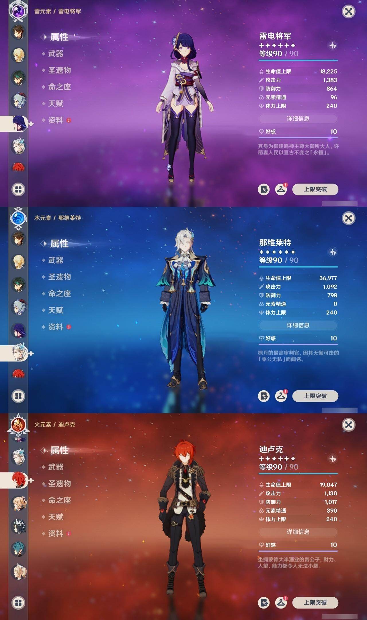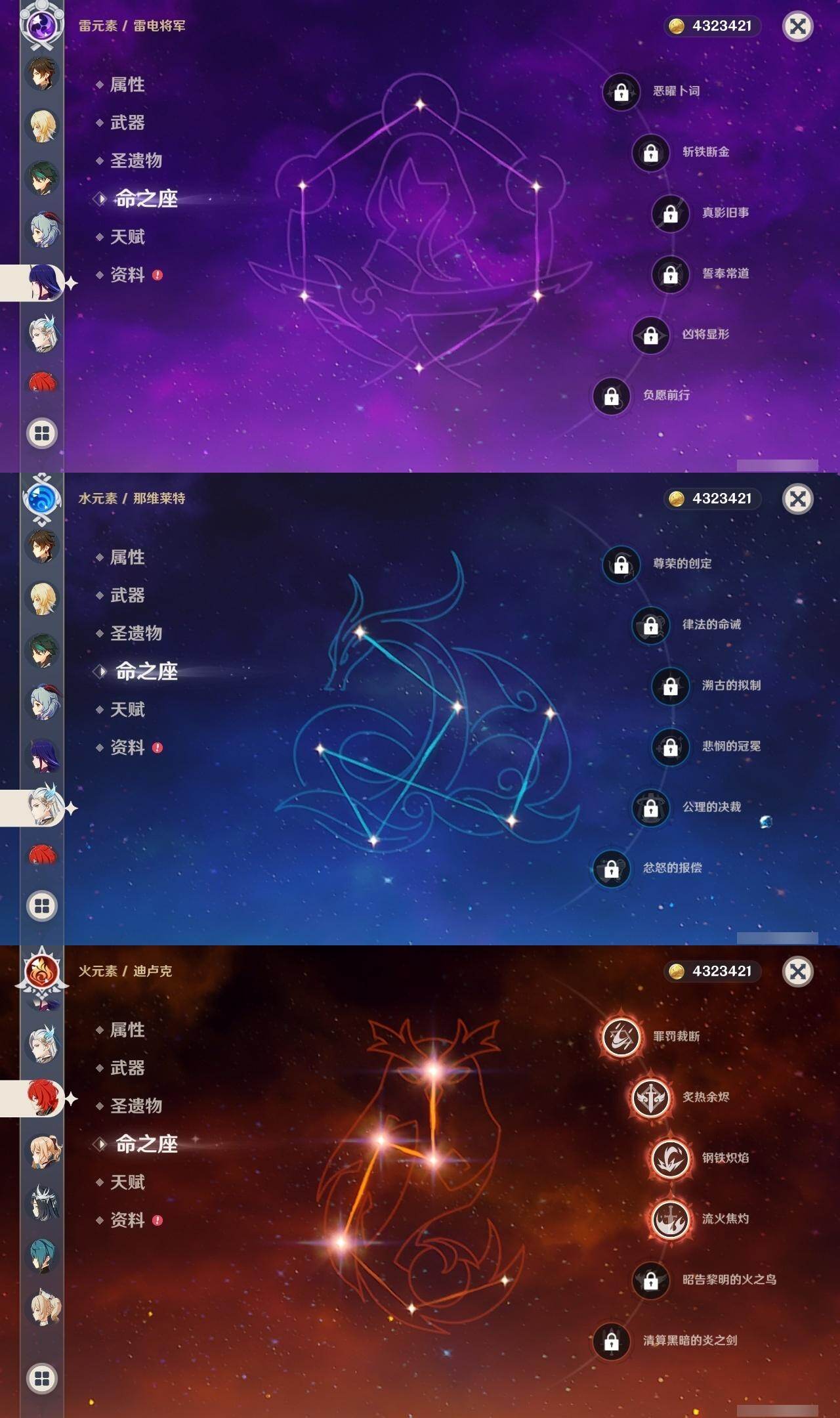 2命阿蕾奇诺,0命那维莱特,2命提纳里,0命雷电将军,0命枫原万叶,0命钟离,0命甘雨,0命魈,0命刻晴,0命琴,0命莫娜,4命迪卢克,0命菲林斯,精1赤月之形,精1息灾,精1雾切之回光,精1和璞鸢,精1天空之脊