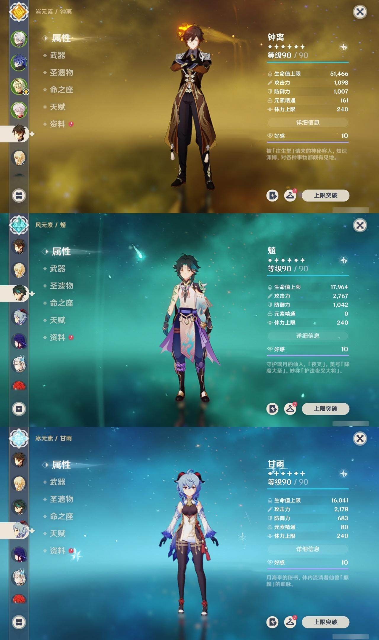 枫原万叶,钟离,魈,甘雨,雷电将军,迪卢克,琴,刻晴,莫娜