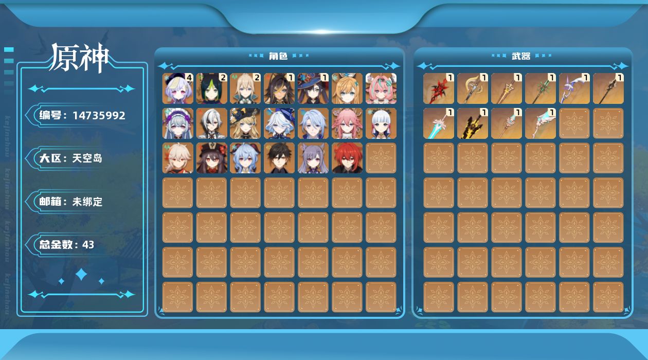 [14735992]60级/43黄/女主/22个五星角色/11个五星武器