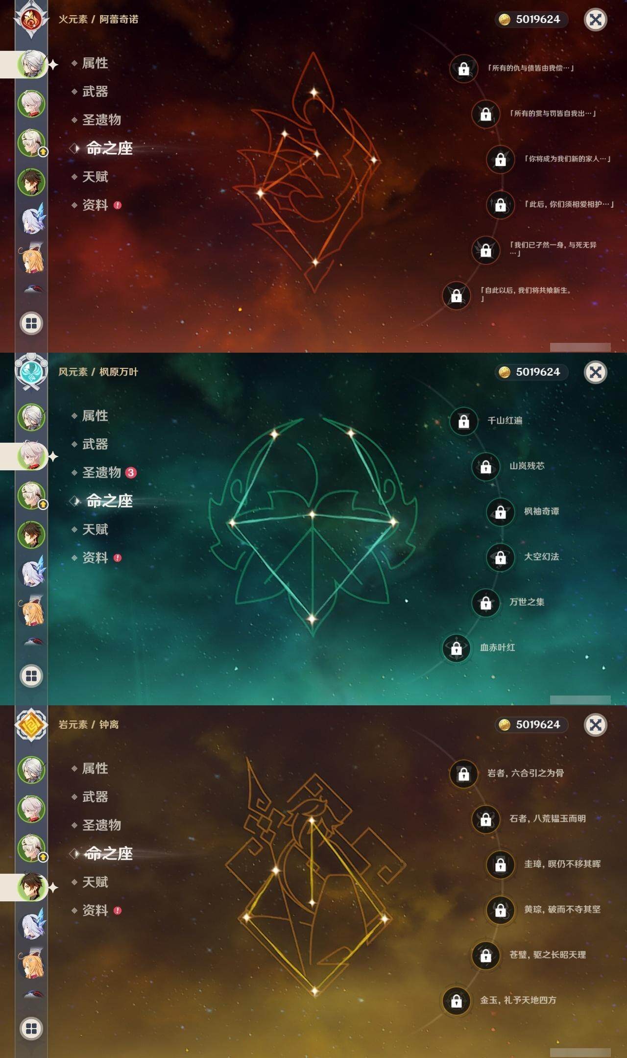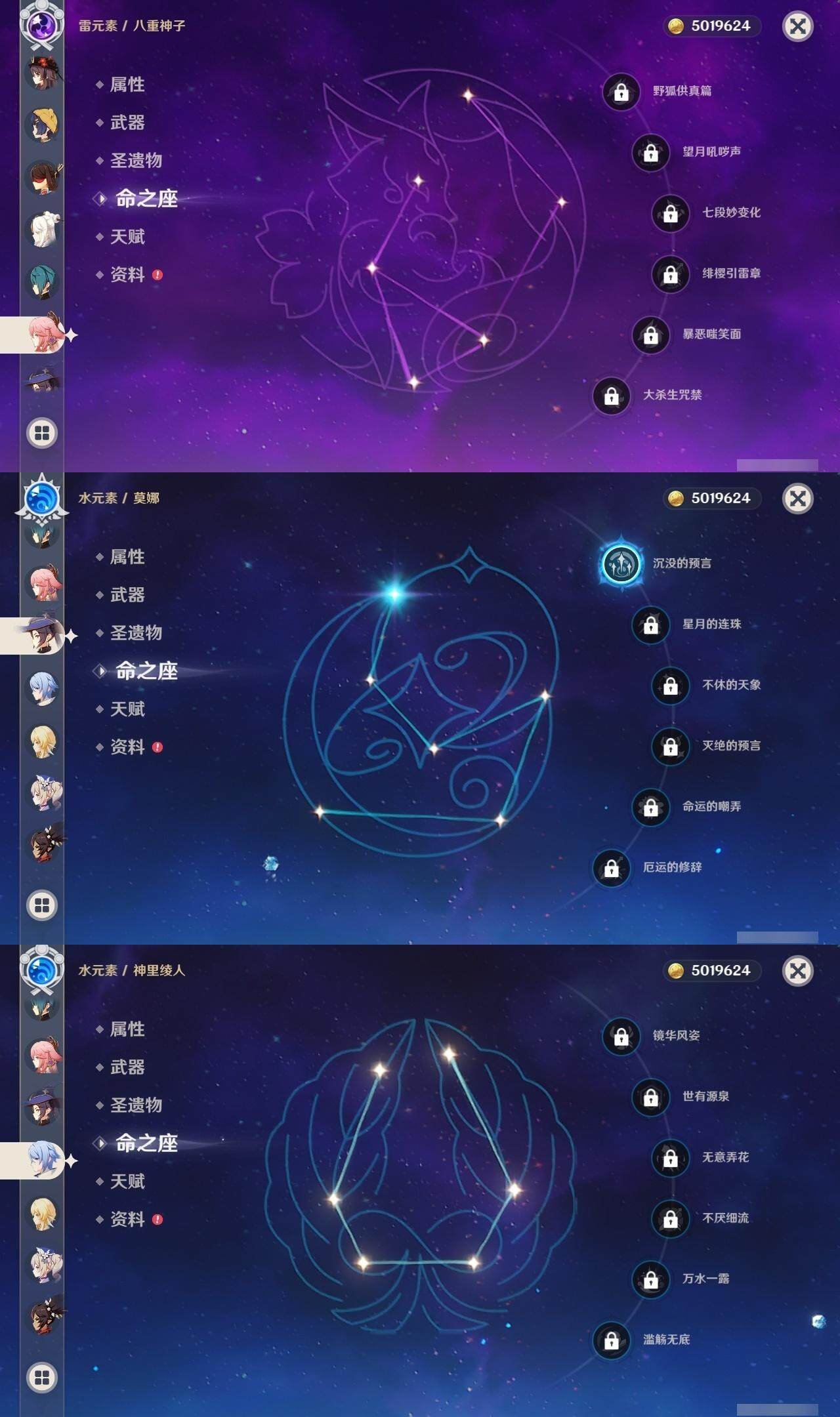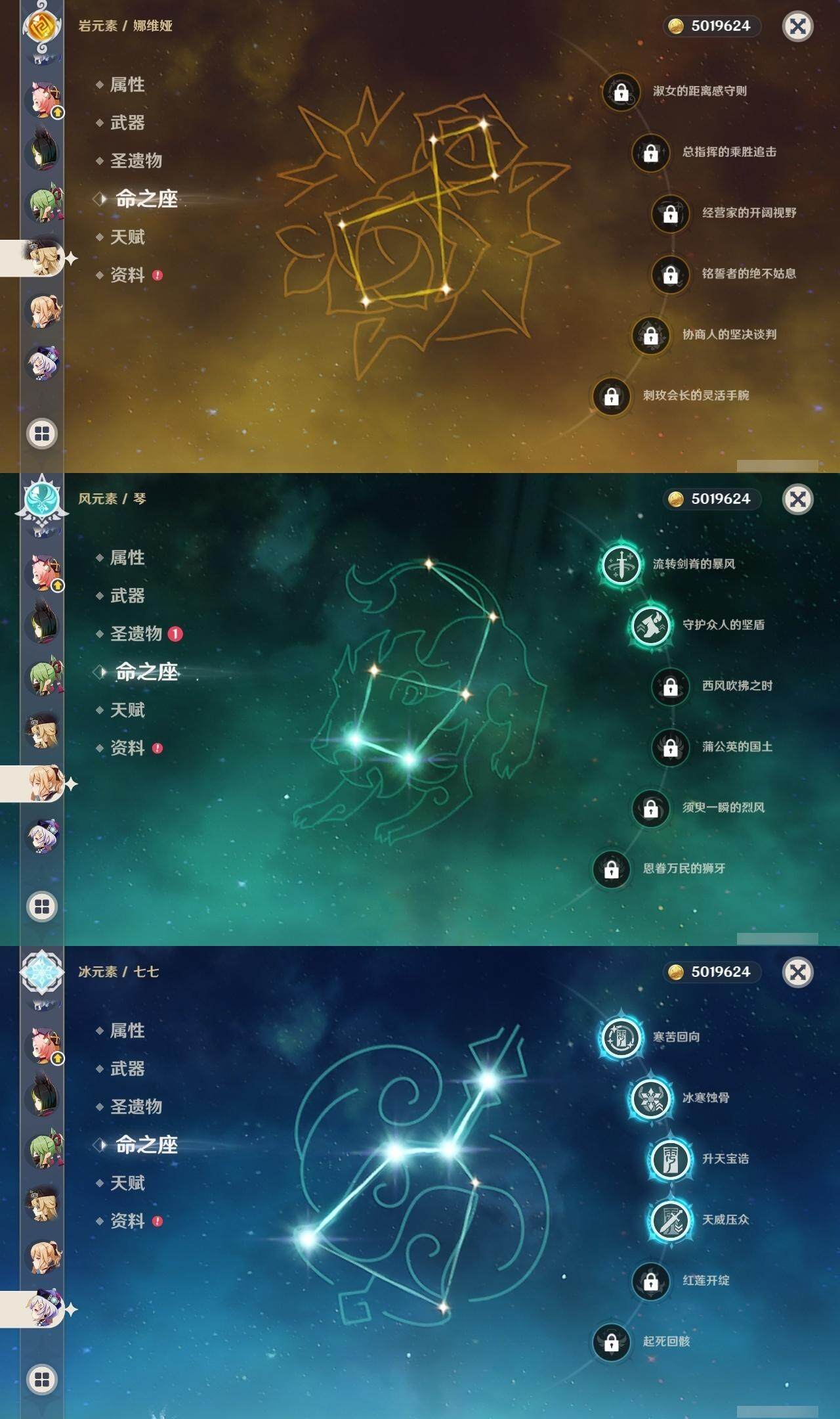 0命阿蕾奇诺,0命娜维娅,0命芙宁娜,1命迪希雅,2命提纳里,0命神里绫人,0命八重神子,0命枫原万叶,0命神里绫华,0命钟离,0命胡桃,0命甘雨,0命刻晴,4命七七,2命琴,1命莫娜,0命迪卢克,0命梦见月瑞希,0命瓦雷莎,0命爱可菲,0命丝柯克,0命菲林斯,精1赤月之形,精1裁断,精1圣显之钥,精1无工之剑,精1和璞鸢,精1天空之脊,精1贯虹之槊,精1天空之翼,精1阿莫斯之弓,精1天空之傲,精1支离轮光
