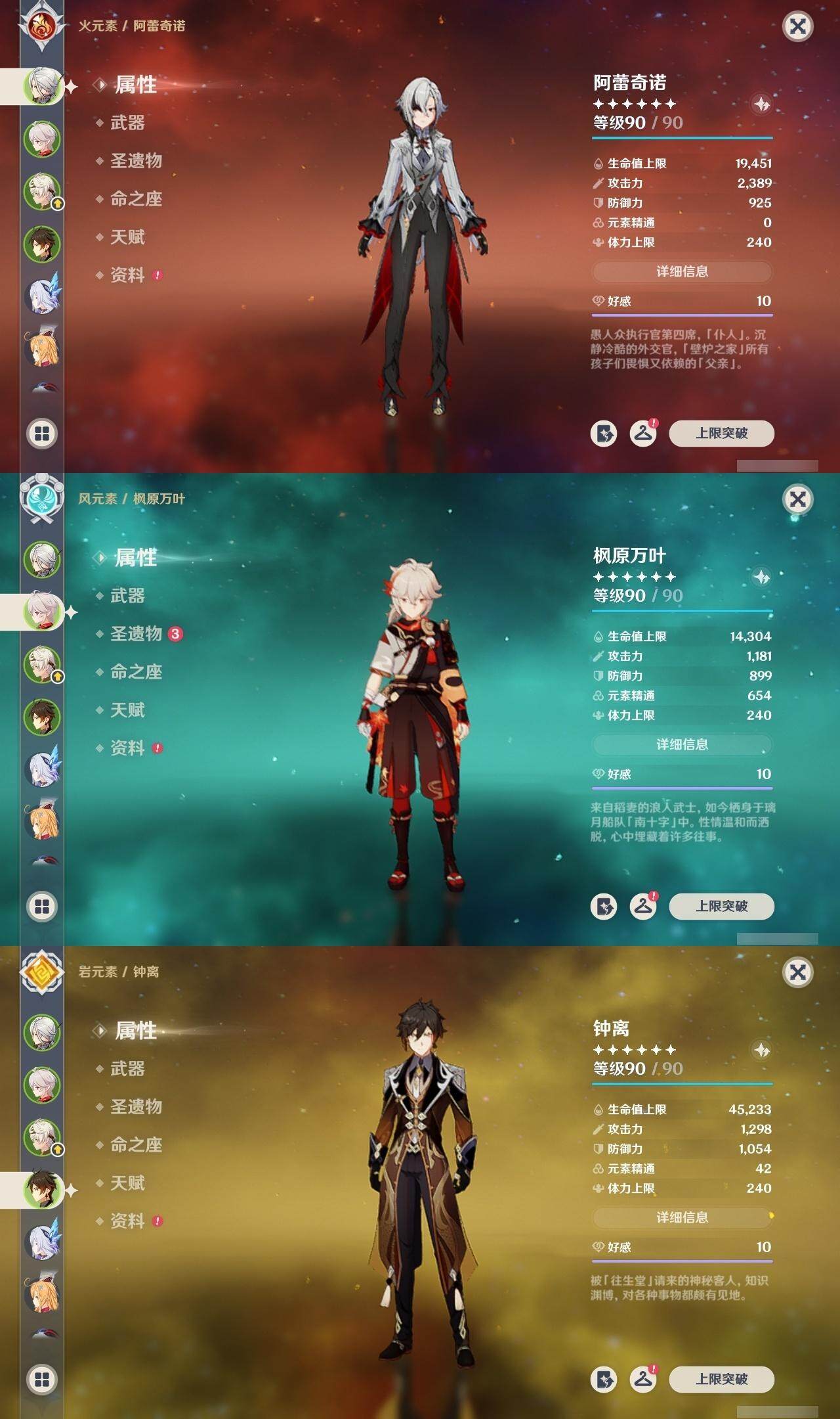 枫原万叶,钟离,甘雨,琴,七七,神里凌华,胡桃,八重神子,莫娜,刻晴,迪卢克