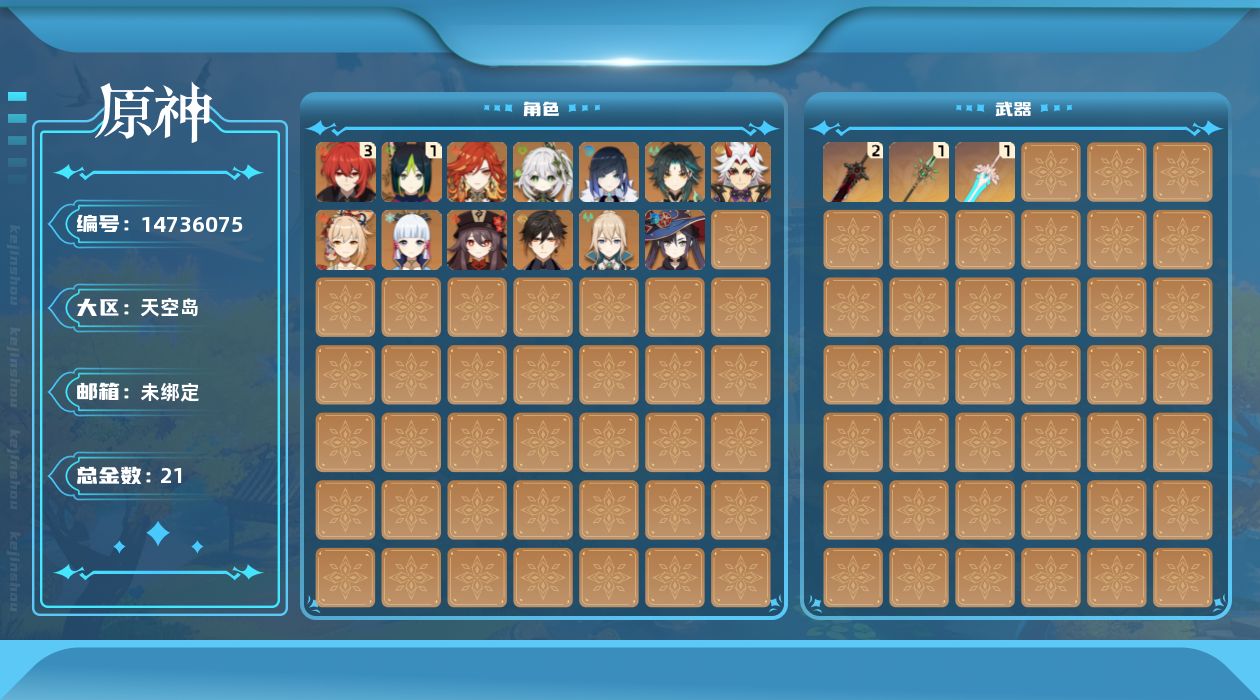 [14736075]57级/21黄/男主/13个五星角色/3个五星武器