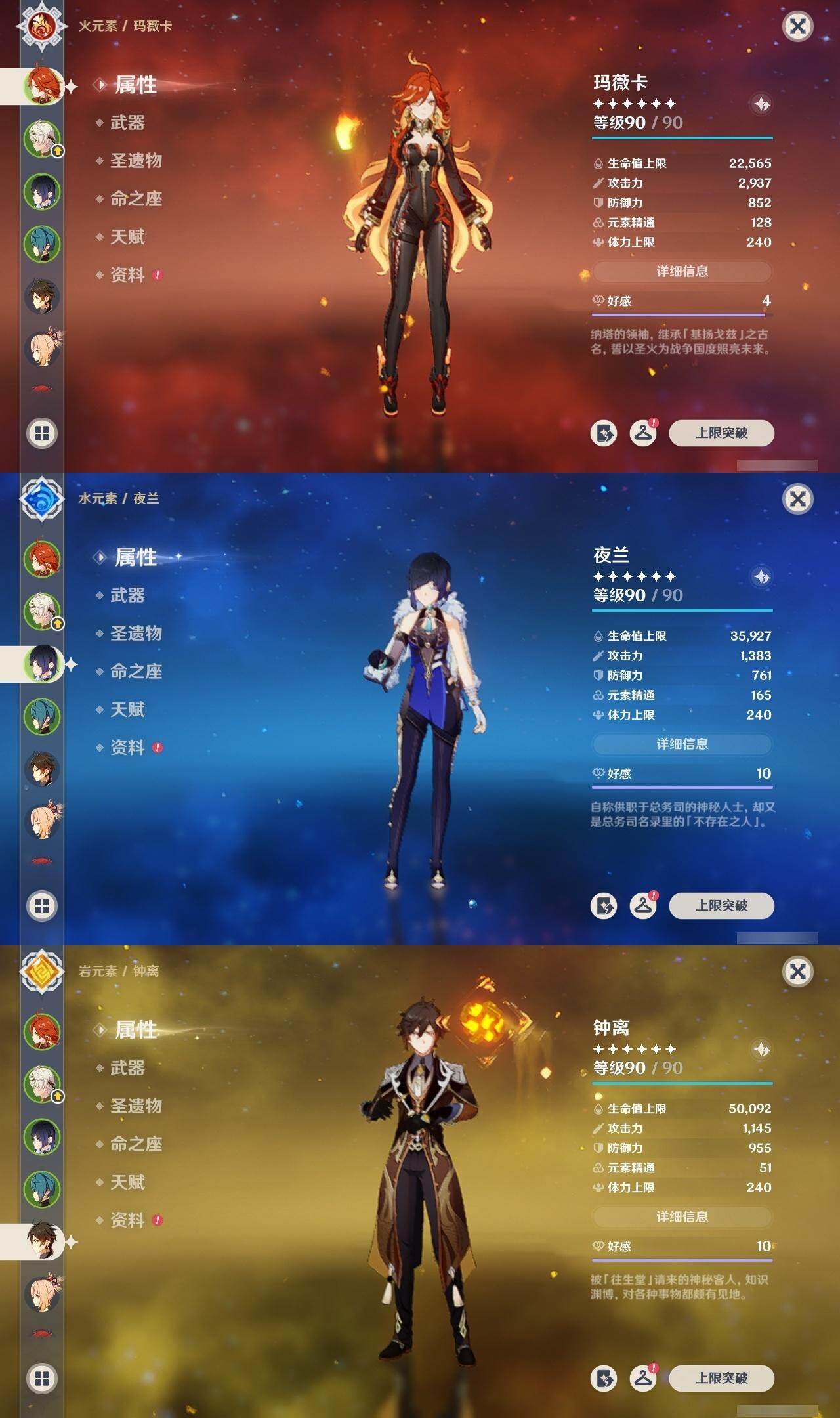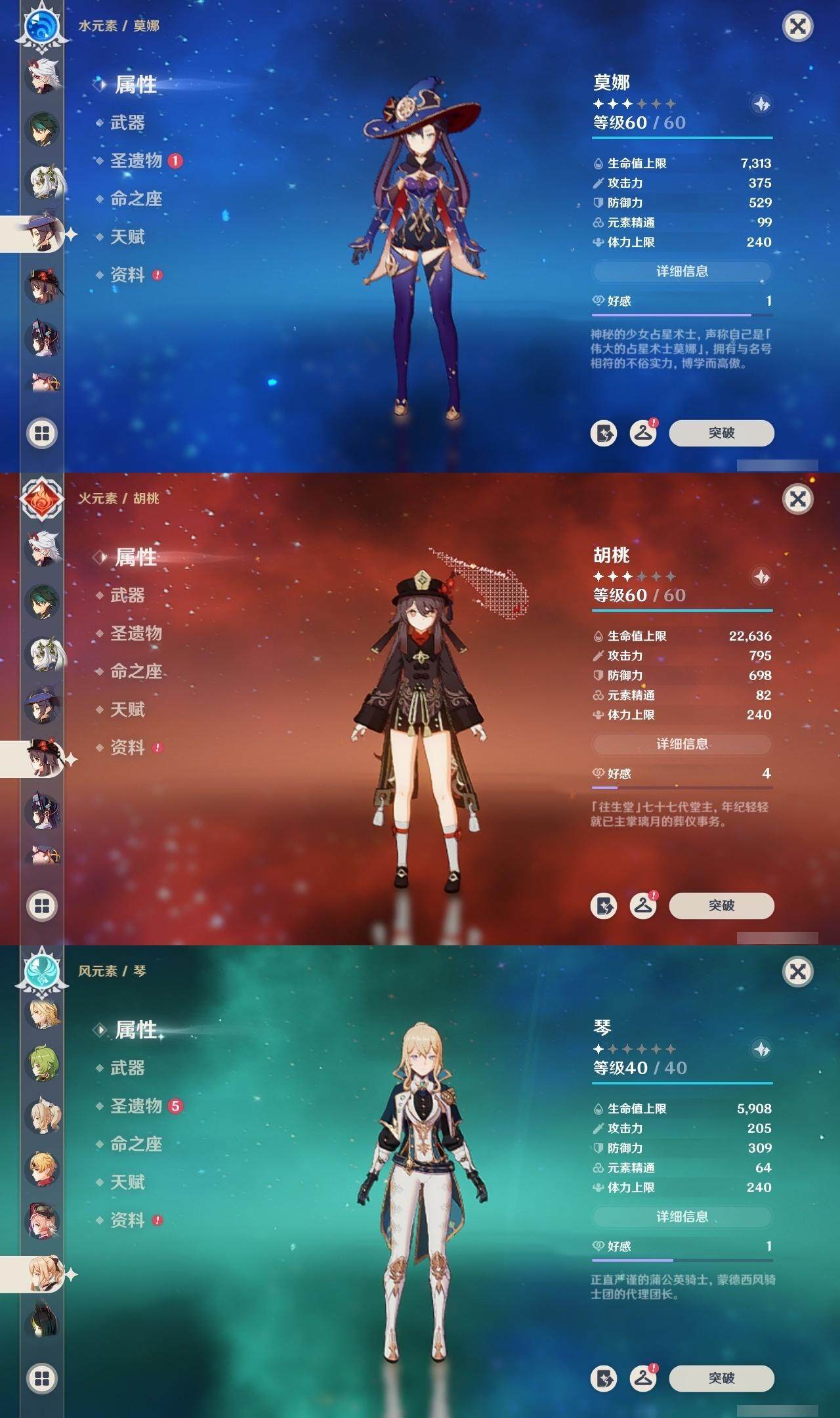 钟离,宵宫,迪卢克,神里凌华,荒泷一斗,魈,莫娜,胡桃,琴