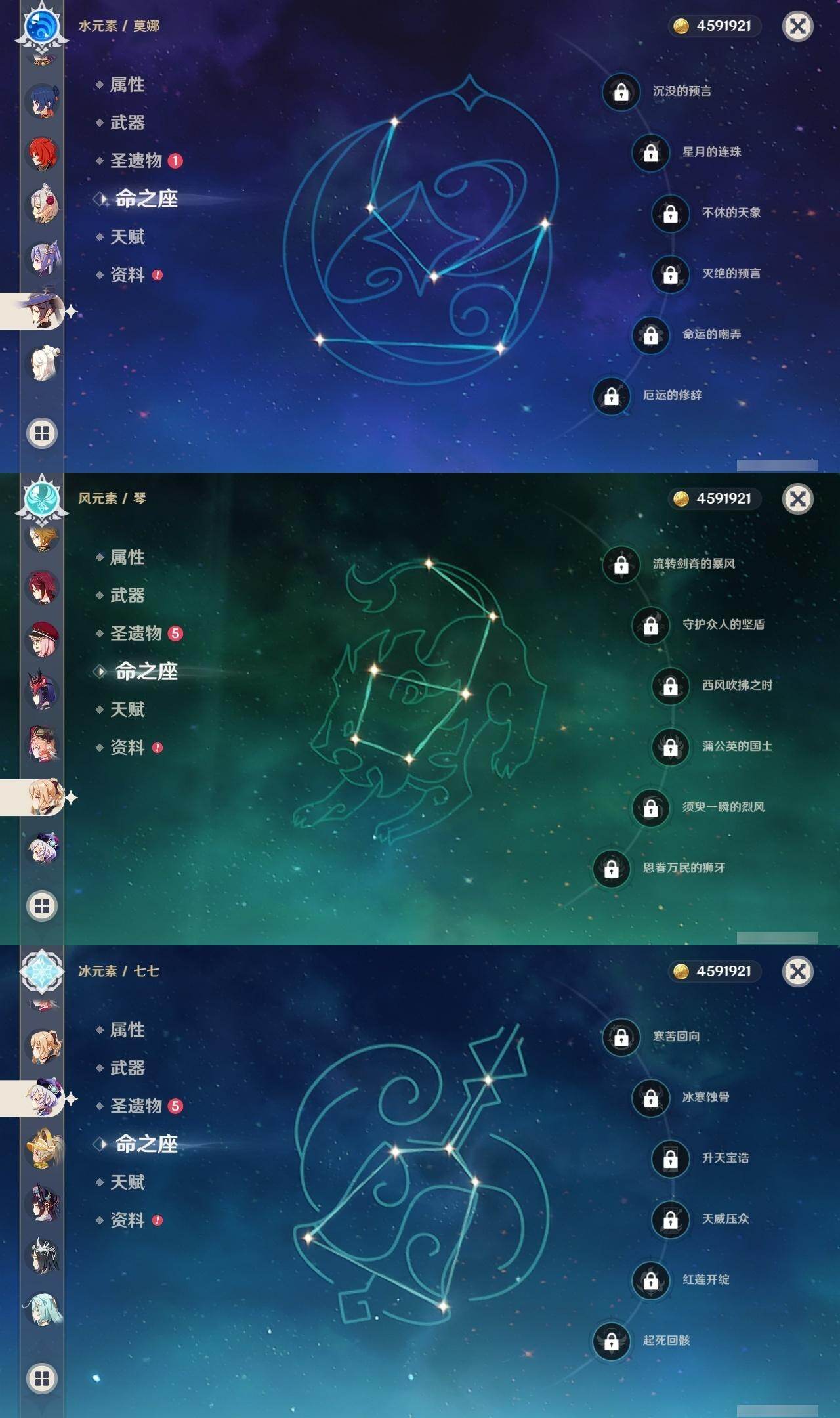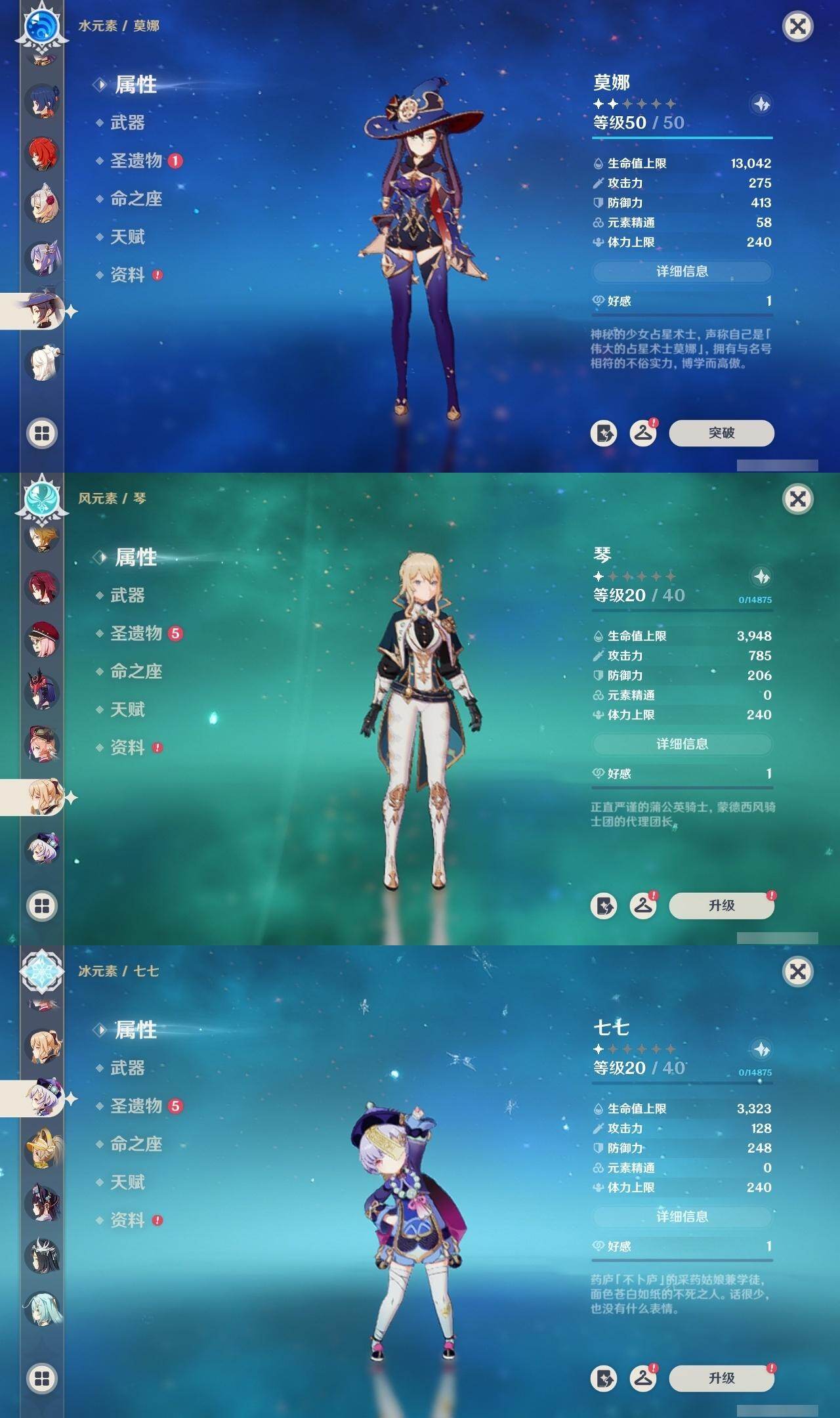 雷电将军,迪卢克,刻晴,莫娜,琴,七七