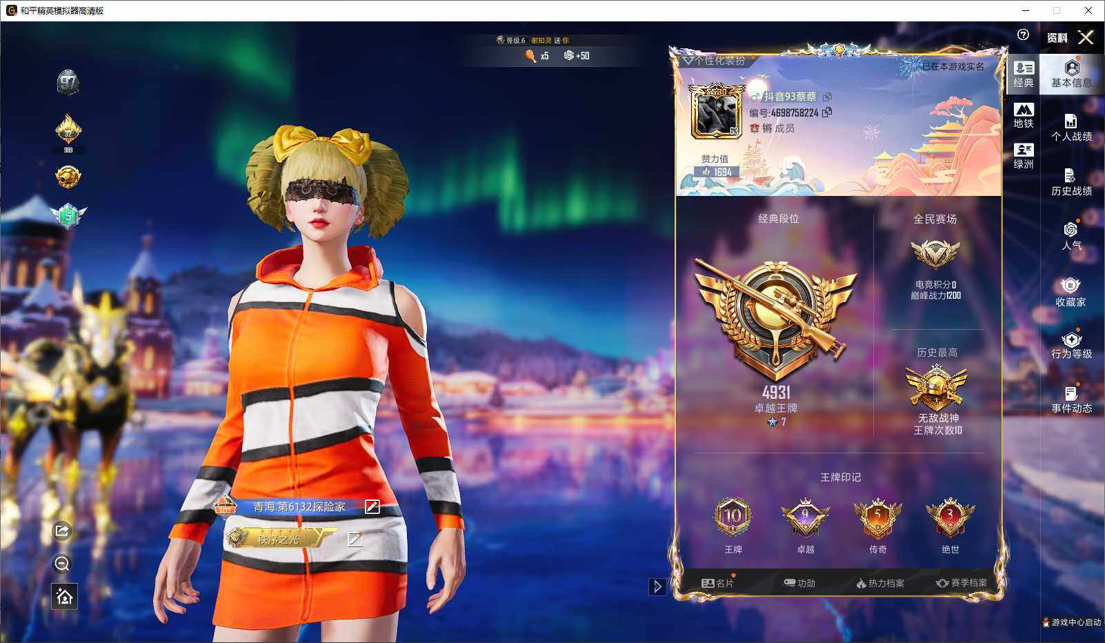 - PX_2102962- 安卓手Q-6王牌印记-1粉装-2特效枪-2载具-30958热力值-92套装-95枪皮-1卓越印记-0传奇印记 【1粉装】,未来领航者 【2特效枪】SCAR-L-青春物语-5级 Kar98K-巳巳如意-5级 【2稀有紫装】,龟仙人,许七安, 【2稀有载具】,路特斯EVIJA(星际黄),焰龙咆哮, 【1僚机】,僚机-萌兔起飞, 【92稀有时装】,SS31特训,SS33特训,S
